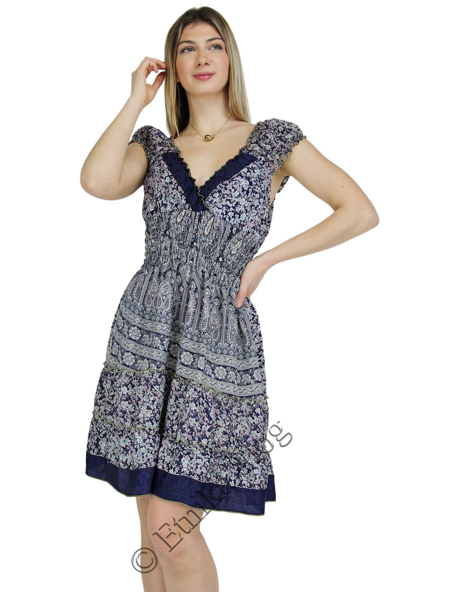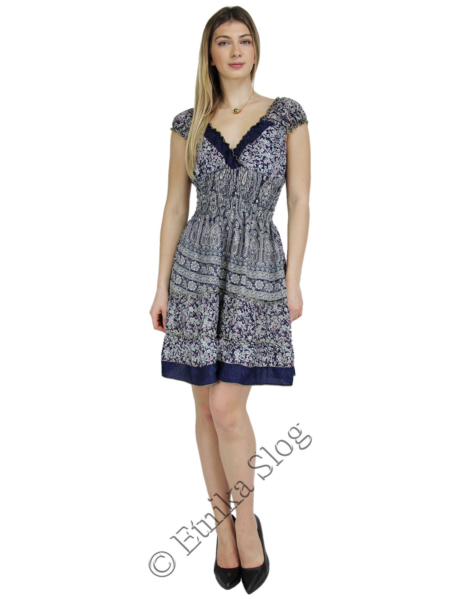 VESTITO CORTO IN MISTOSETA INDIANA, 10%SETA , 30%VISCOSA E 60%POLIESTERE.