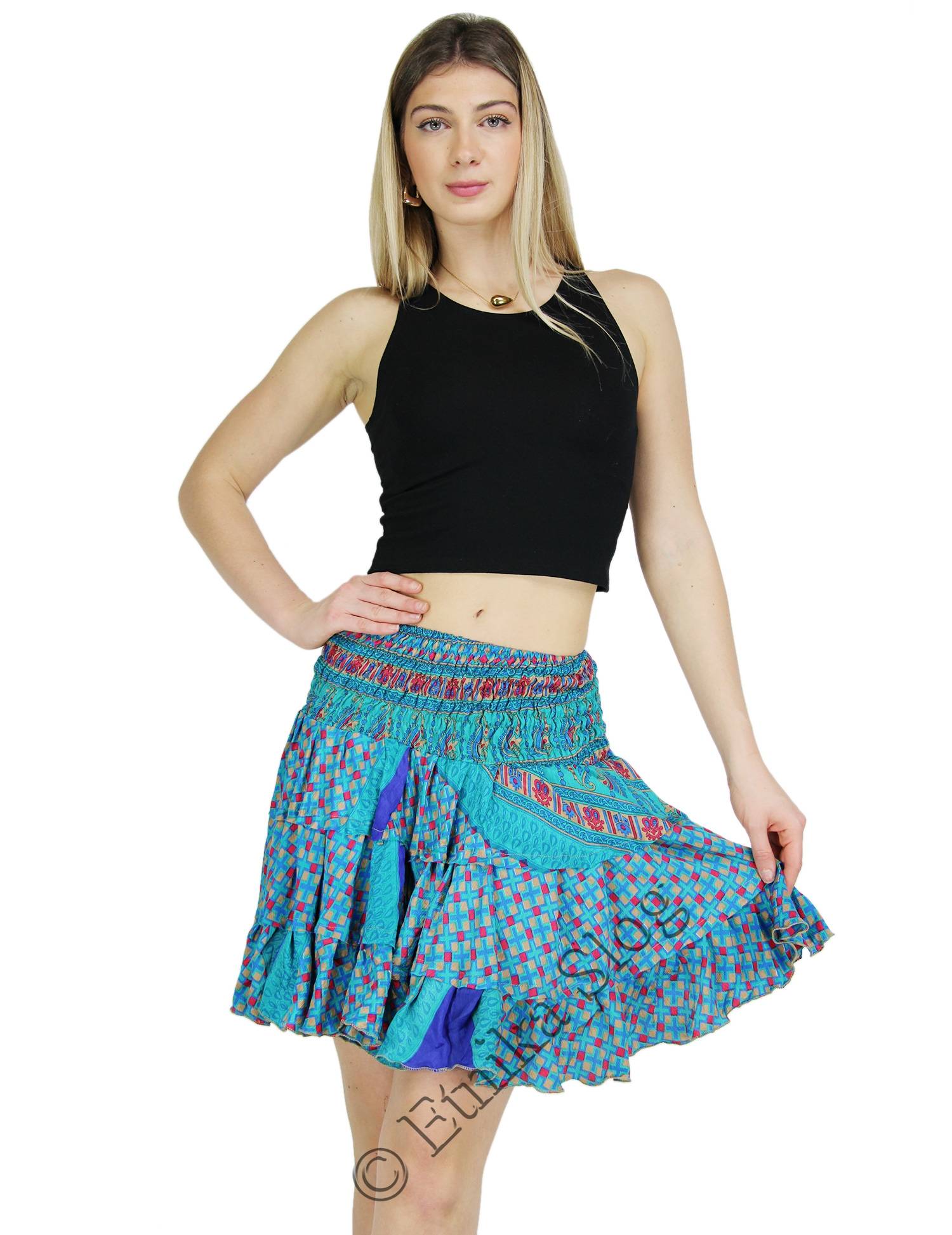 GONNA CORTA A BALZE CON FASCIA ELASTICA.