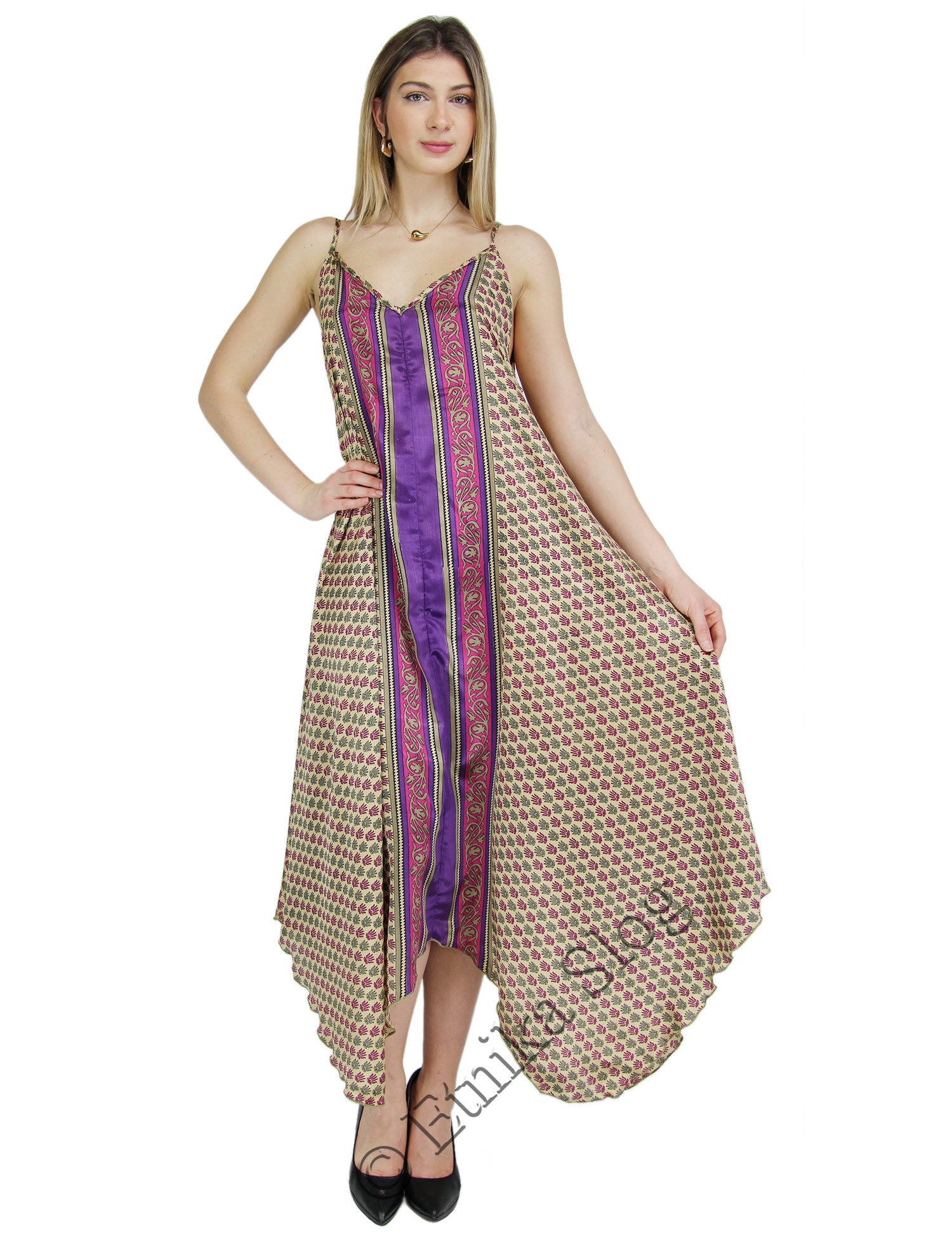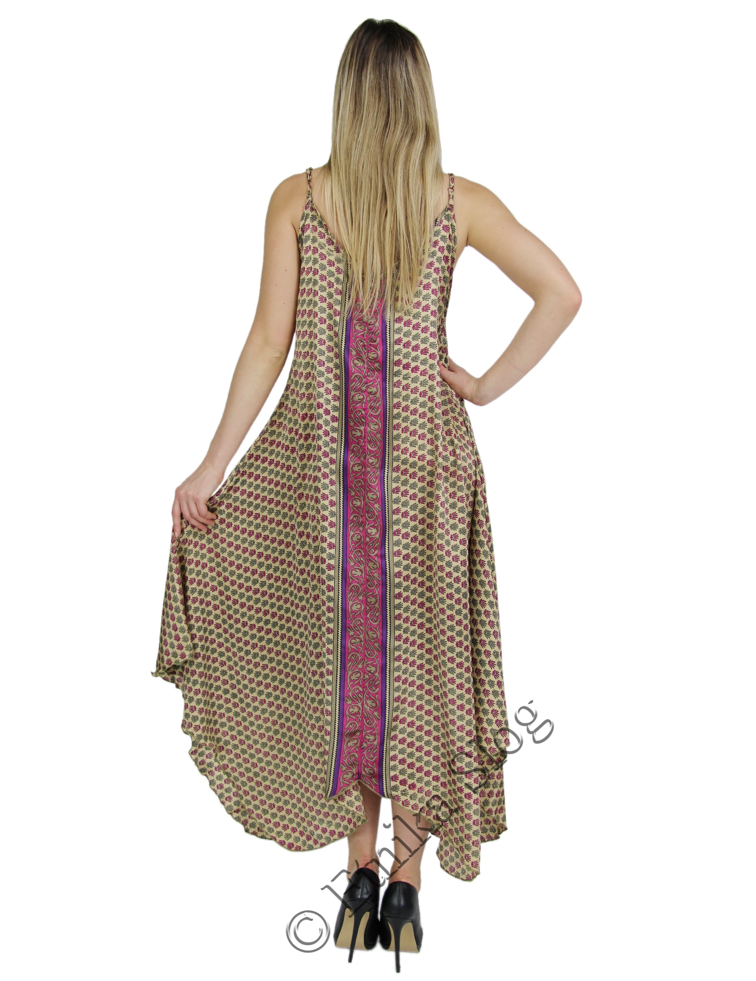 VESTITO LUNGO IN MISTOSETA INDIANA, 10%SETA , 30%VISCOSA E 60%POLIESTERE.