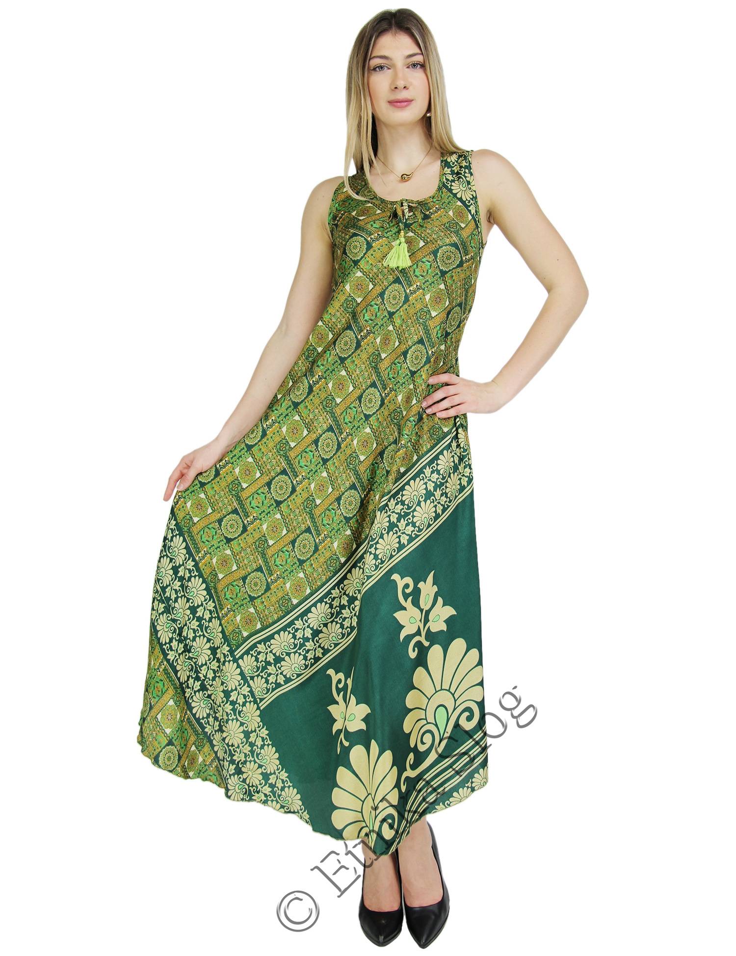 VESTITO LUNGO IN MISTOSETA INDIANA, 10%SETA , 30%VISCOSA E 60%POLIESTERE.