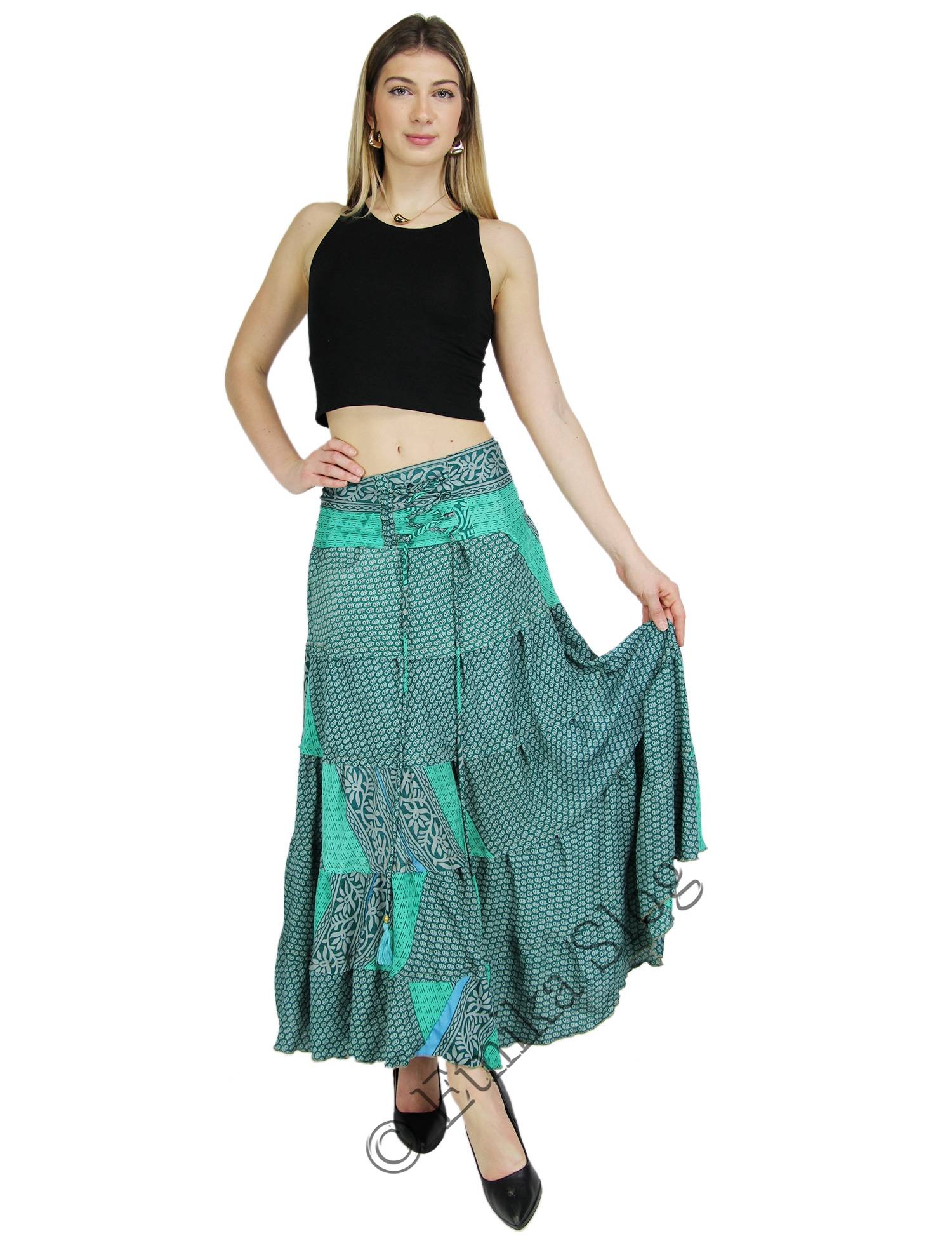 GONNA/VESTITO A BALZE CON FASCIA ELASTICA E LACCIO.