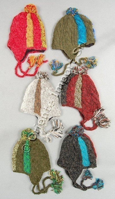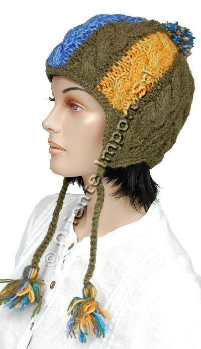 BERRETTO IN LANA MOHAIR, TRECCIE COLORATE, PONPON, COPRIORECCHIE E PILE INTERNO.