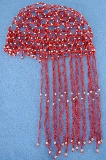 COPRICAPO DANZA DEL VENTRE RETE DI PERLINE E PALLINE SENZA MEDAGLIETTE.