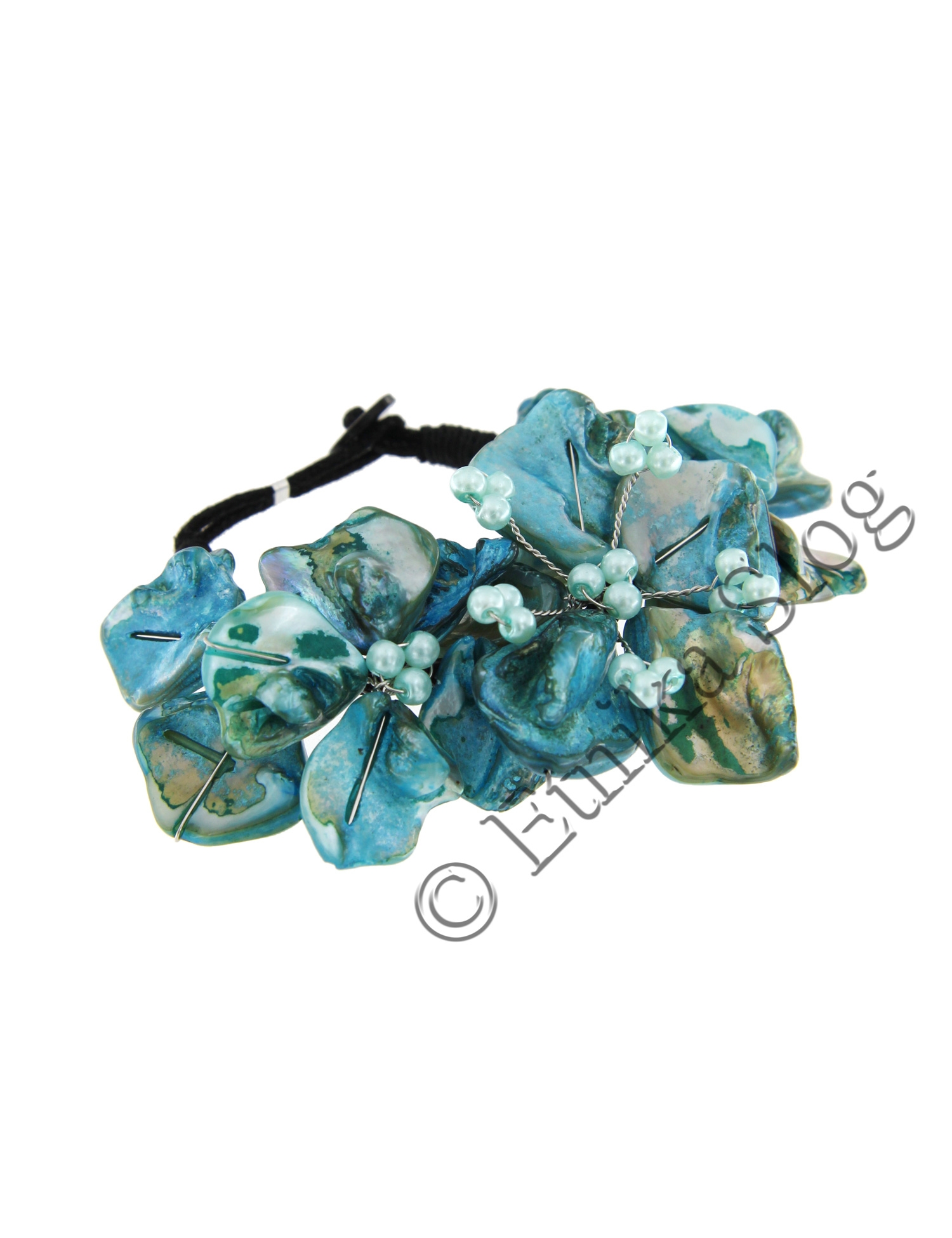 BRACCIALETTO IN MADREPERLA E INTRECCIO IN METALLO , CHIUSURA CON BOTTENE