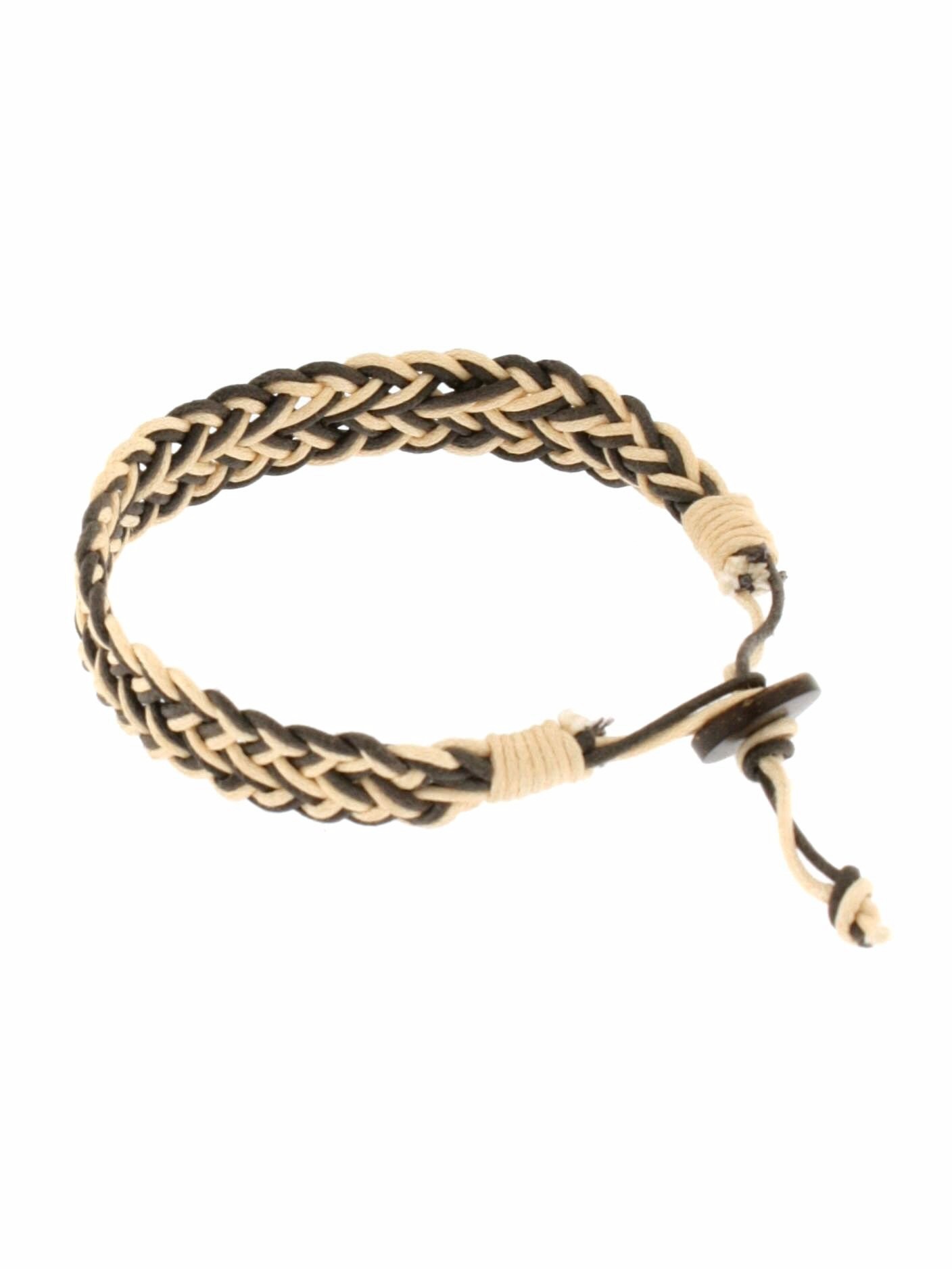 BRACCIALETTO IN CORDONCINO DI COTONE IN 2 COLORI INTRECCIATO, REGOLABILE CHIUSURA CON BOTTONE IN COCCO.