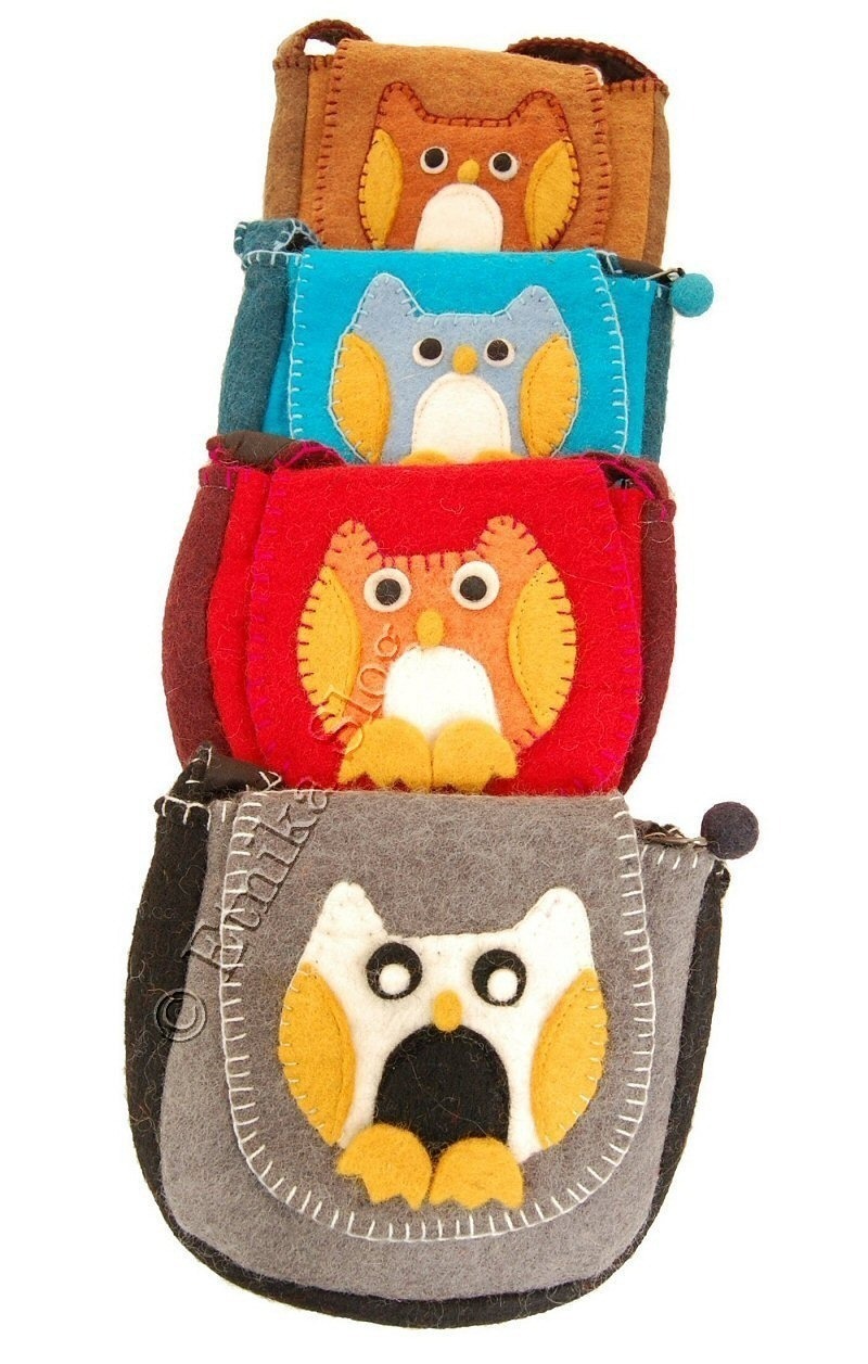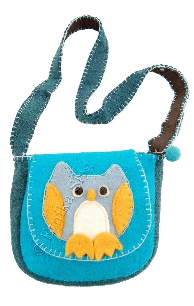 BORSA IN LANA COTTA A TRACOLLA PER BAMBINI, CON GUFO CON ZAMPE.
