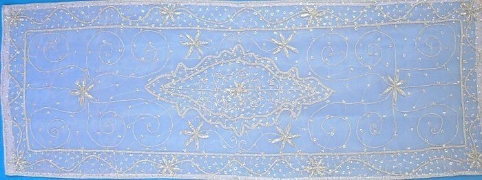 CENTROTAVOLA RETTANGOLARE, CM 150 X 52 RICAMI NAKSHI (ARGENTO).