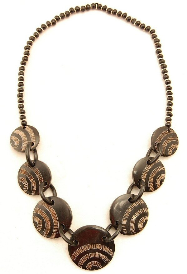 COLLANA CON COMPONENTI FATTI DI CORNO, 7 DISCHI INTAGLIATI.