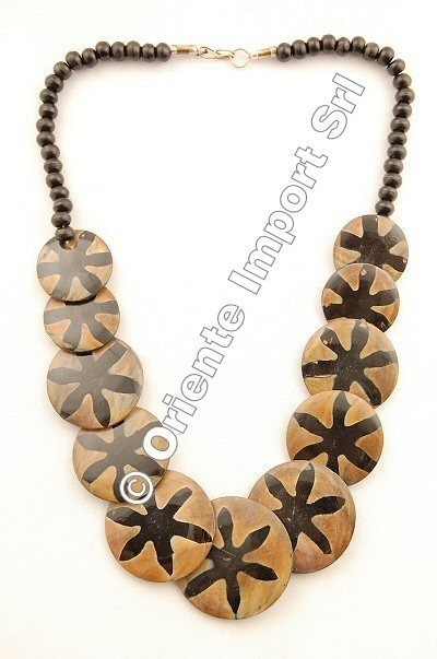 COLLANA IN CORNO A DISCHI CON DISEGNI VARI.