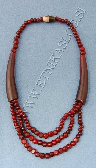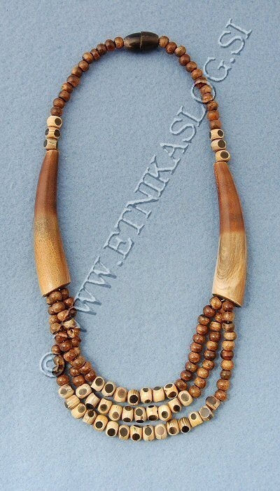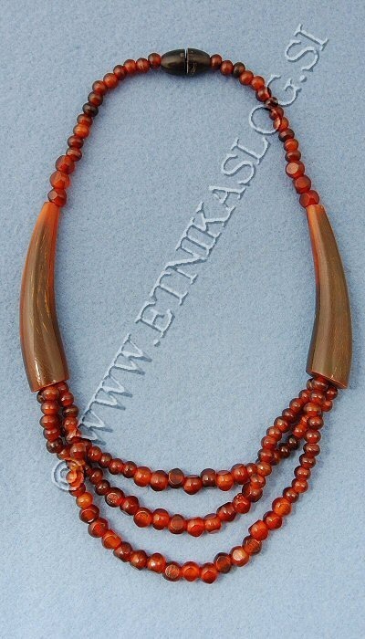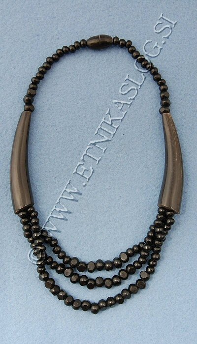 COLLANA IN CORNO CORTA, A 3 ELEMENTI E PICCOLE SFERE.