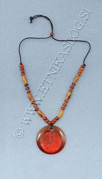 COLLANA CORDONCINO, PENDENTE E PERLINE IN CORNO, DISPONIBILE IN TRE COLORI.