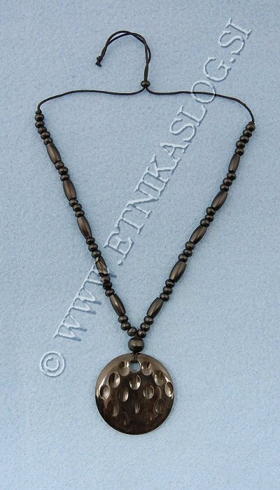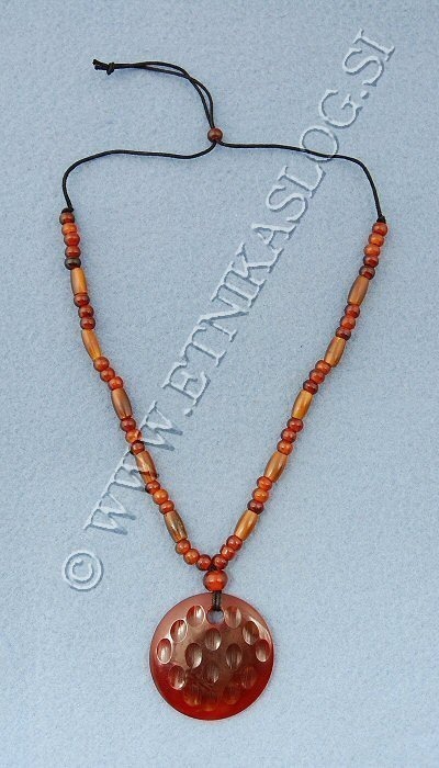 COLLANA CORDONCINO, PENDENTE E PERLINE IN CORNO, DISPONIBILE IN TRE COLORI.