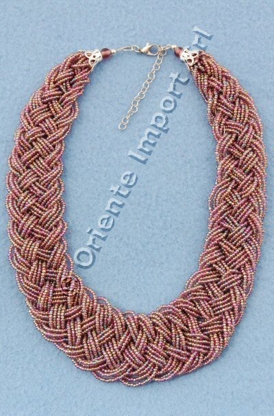 COLLANA A TRECCIA DI PERLINE GIROCOLLO, REGOLABILE.