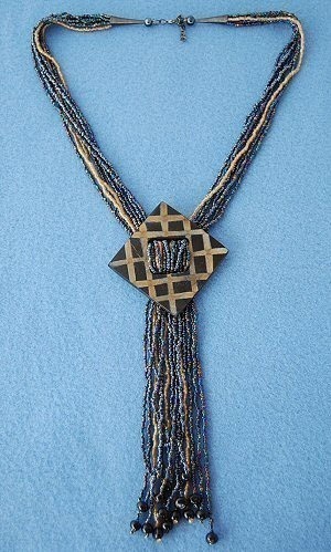 PENDENTE QUADRATO - PERLINE ANTRACITE, MULTICOLORE E ORO.