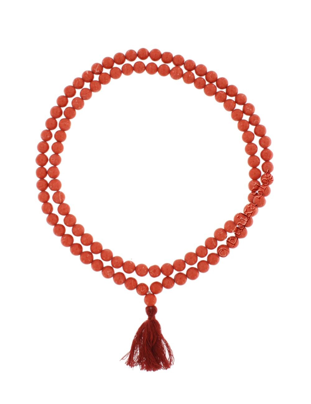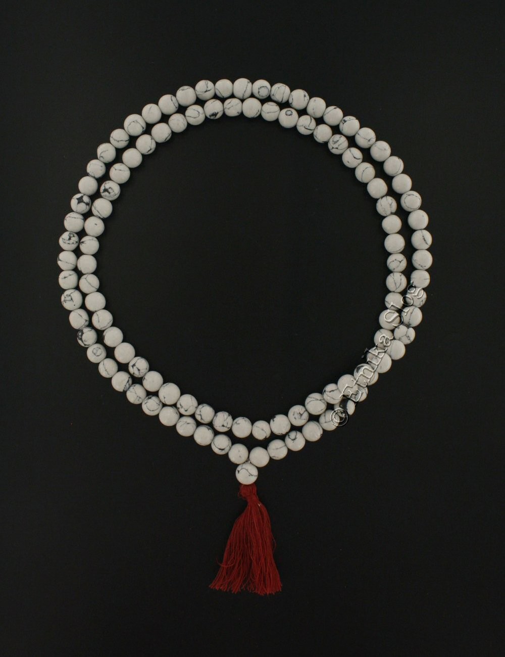 COLLANA MALA 108 PERLE IN PASTA DI PIETRA DIAMETRO MM 8-9 CON FIOCCO COLORATO.