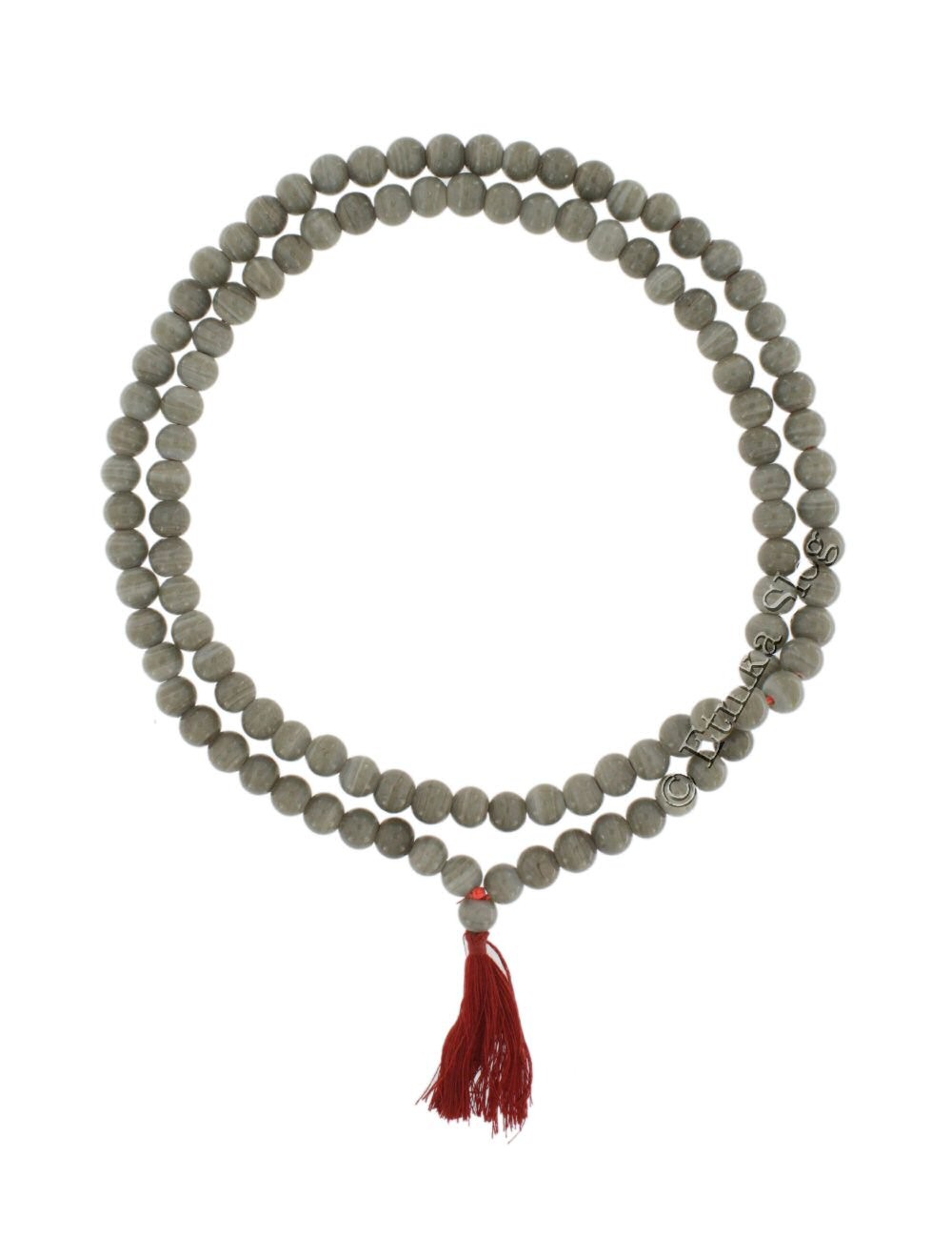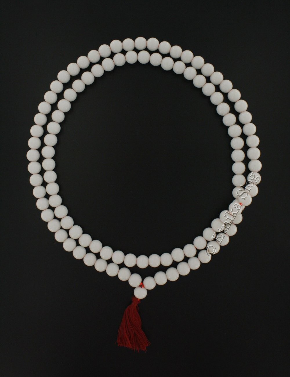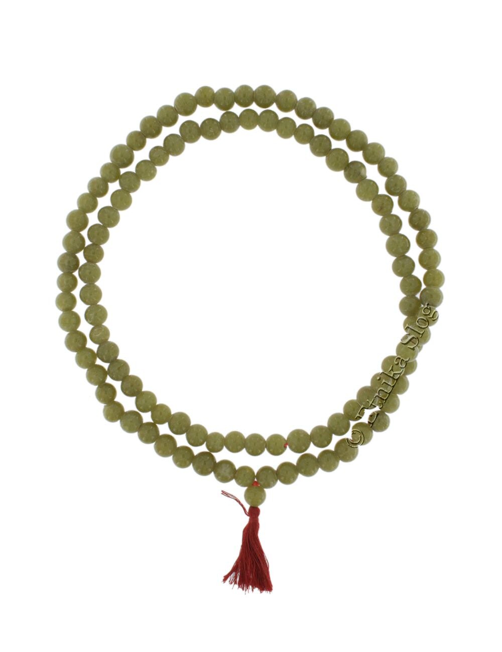 COLLANA MALA 108 PERLE IN VETRO DIAMETRO MM 10 CON FIOCCO COLORATO.