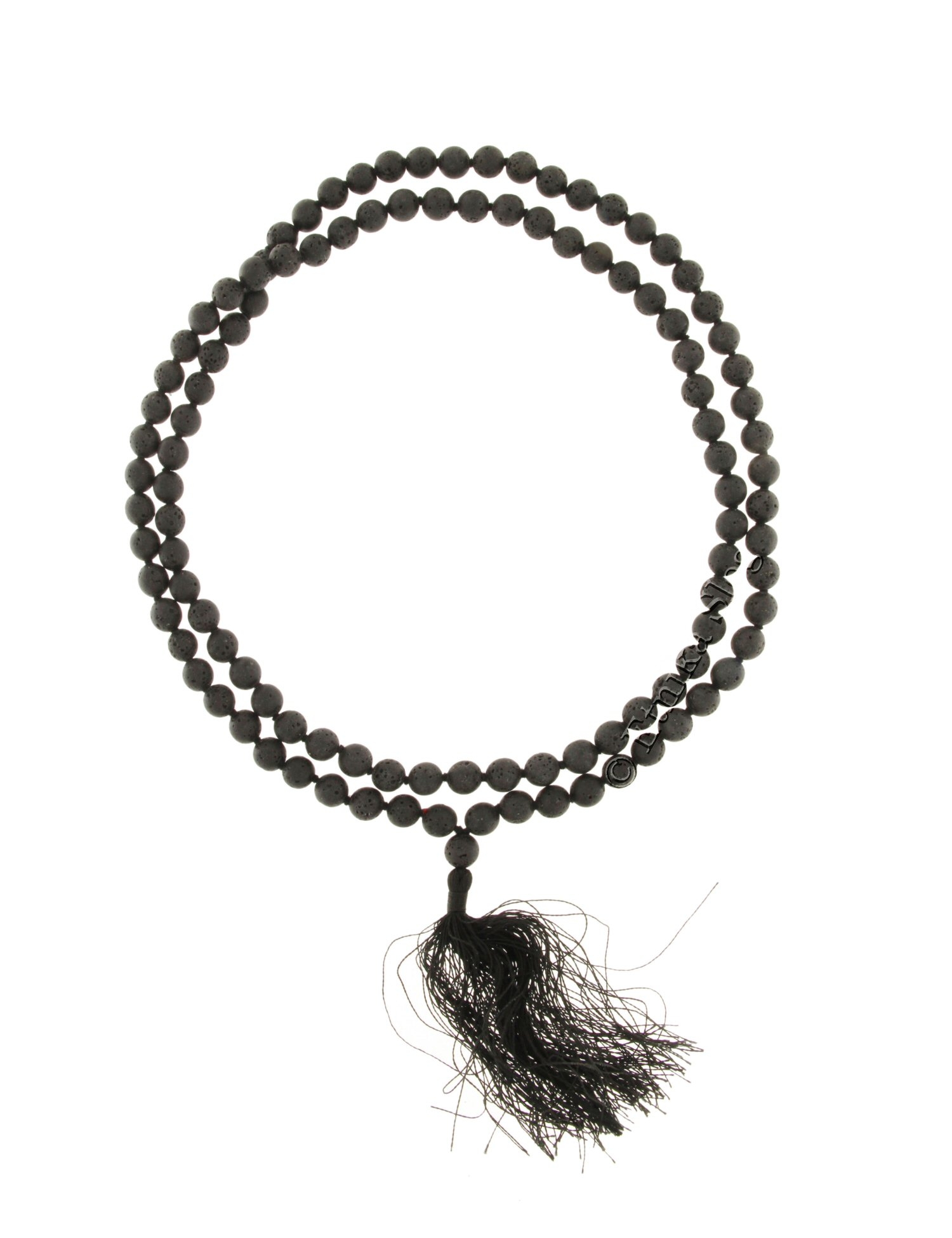 COLLANA MALA IN PIETRA LAVICA CON FIOCCO COTONE NERO , SFERE MM 8 .