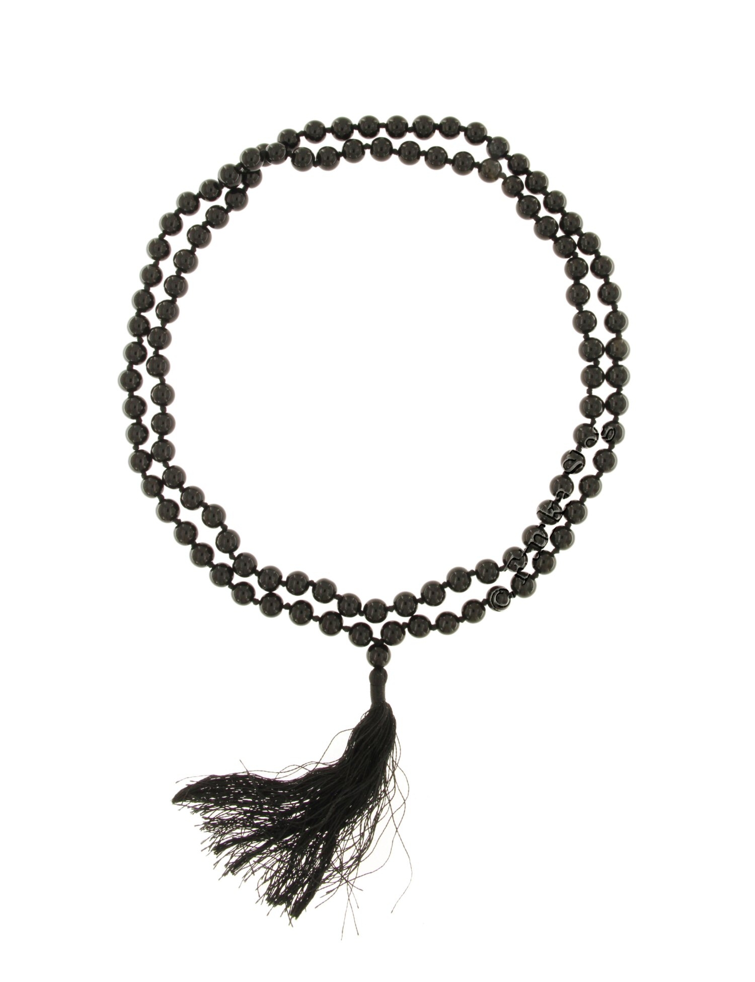 COLLANA MALA IN OSSIDIANA CON FIOCCO COTONE NERO , SFERE MM 8 .
