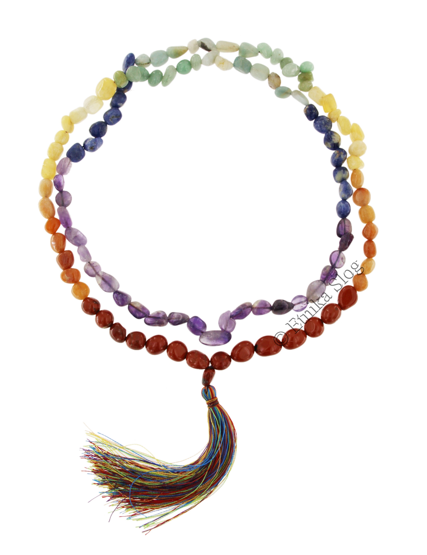 COLLANA MALA - 7 CHAKRA- CON FIOCCO COTONE MULTICOLORE , SFERE MM 8 .