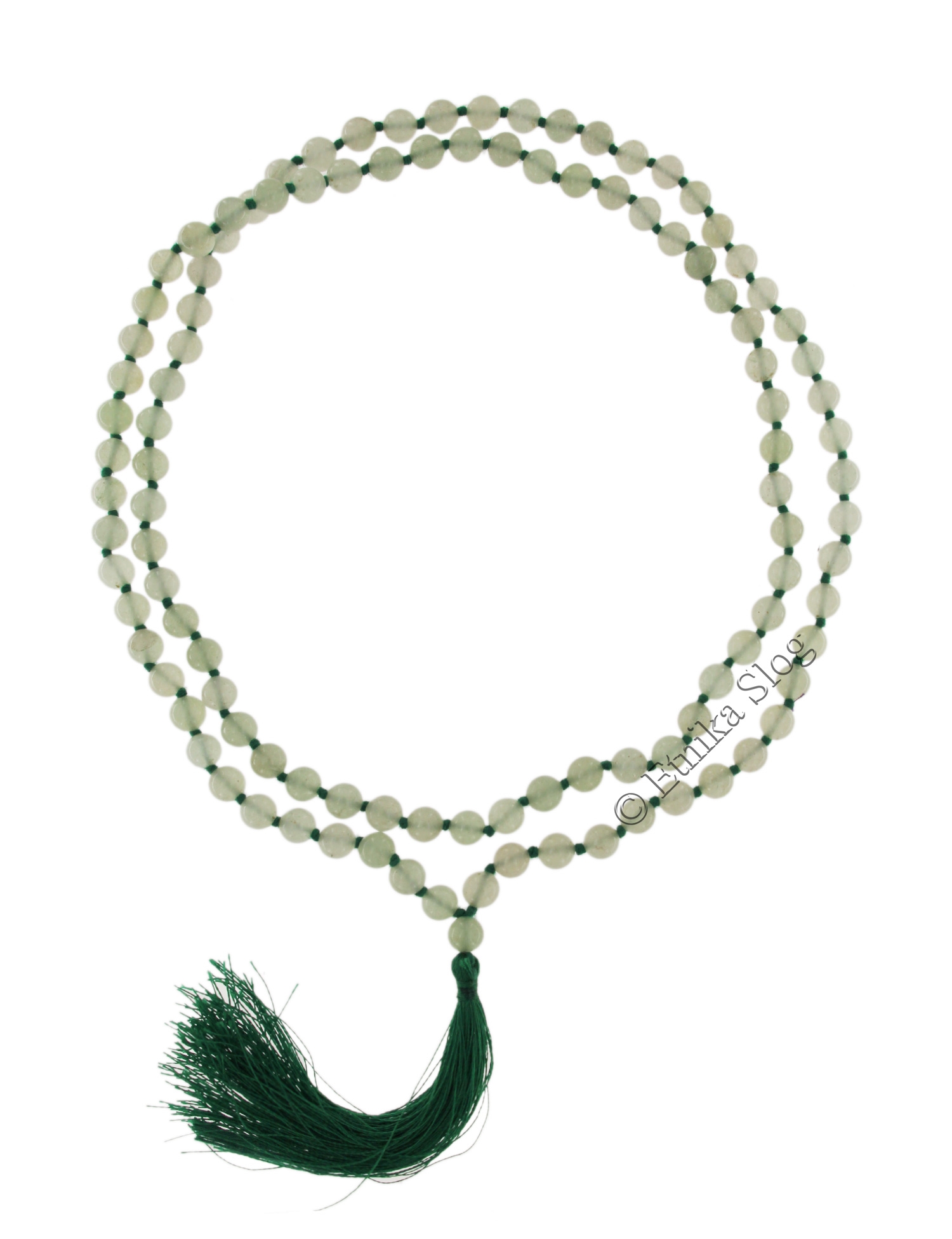 COLLANA MALA IN AVVENTURINA COTONE VERDE , SFERE MM 8 .