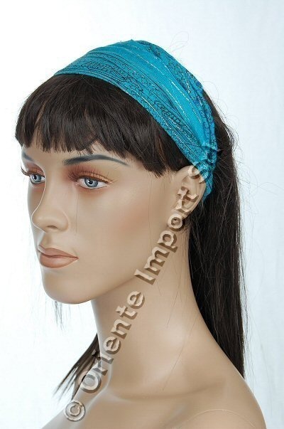 FASCIA PER CAPELLI IN COTONE CON FILO LUREX ARGENTO CON ELASTICO DIETRO.