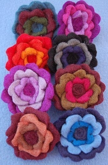 FERMACAPELLI ELASTICO IN LANA COTTA, A FORMA DI ROSA, CON TRE GIRI DI PETALI,COLORI TONO SU TONO. DIAMETRO CM 8.