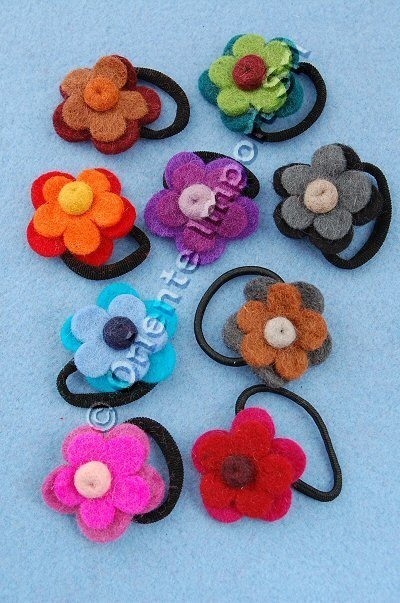 FERMACAPELLI ELASTICO IN LANA COTTA A FIORE, CON 2 CORONE E BOCCIOLO.