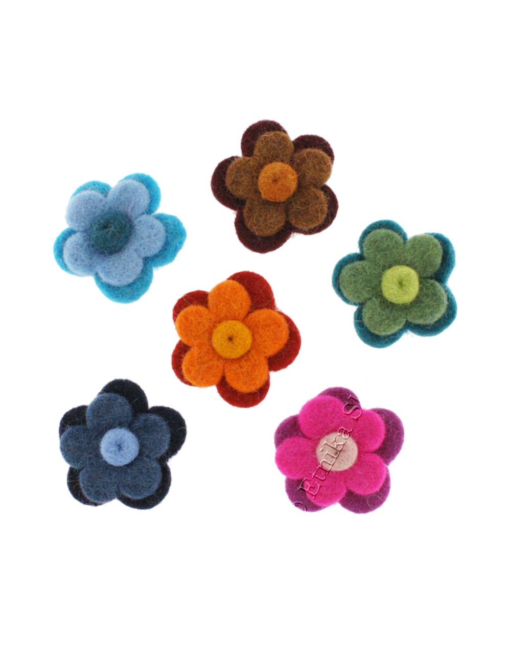 FIORI SCIOLTI IN LANA COTTA, A DUE CORONE ARROTONDATE CON PALLINA CENTRALE.