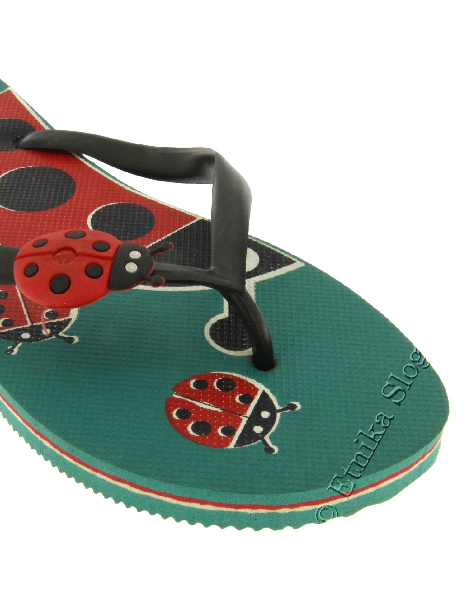 INFRADITO IN GOMMA, SOGGETTO COCCINELLA STAMPATO E APPLICATO.