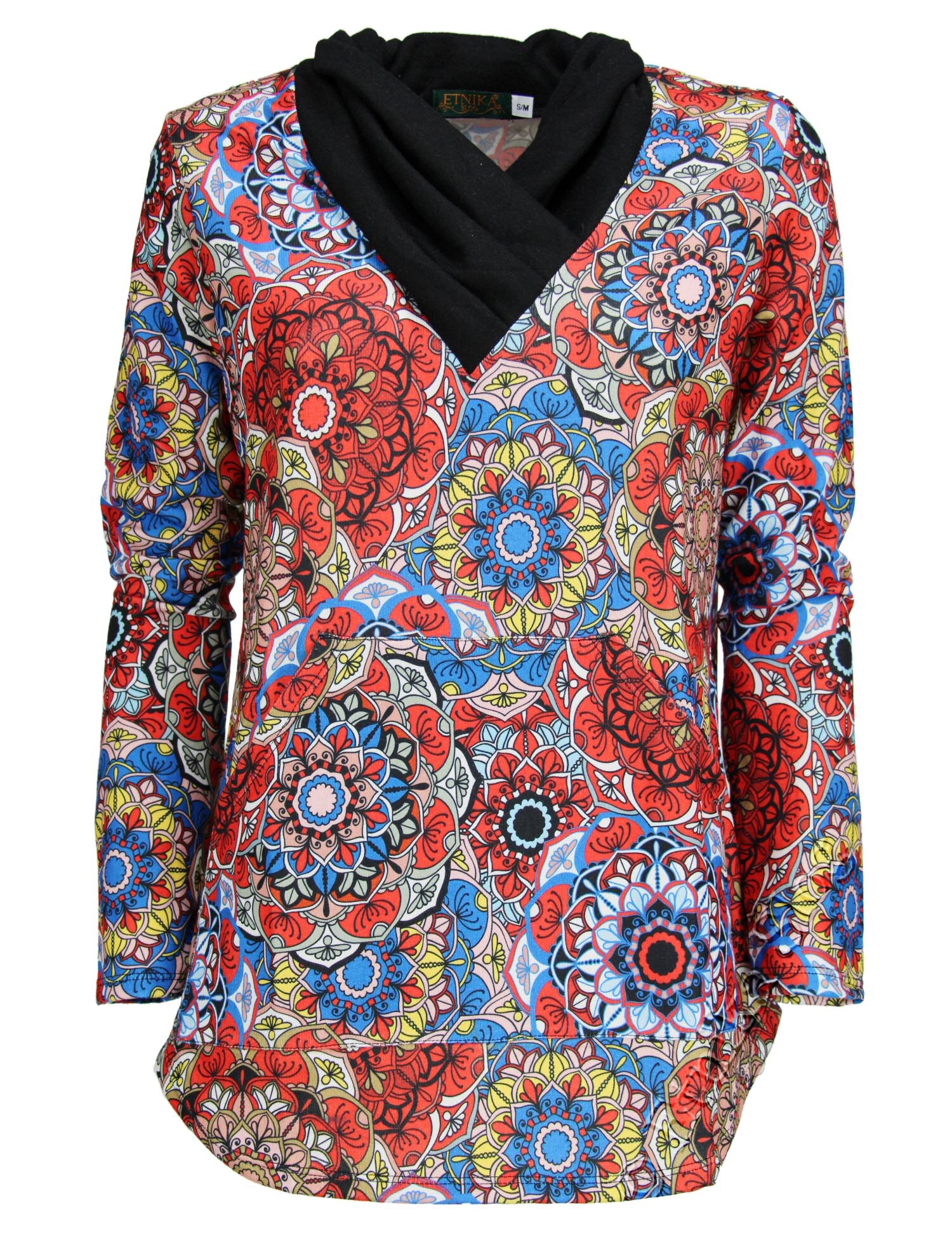 MAGLIA IN MAGLINA CON ELASTAN , MANICHE LUNGHE E COLLO CIAMBELLA CON 3 BOTTONI.