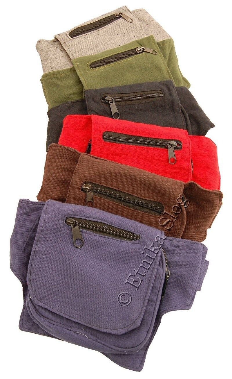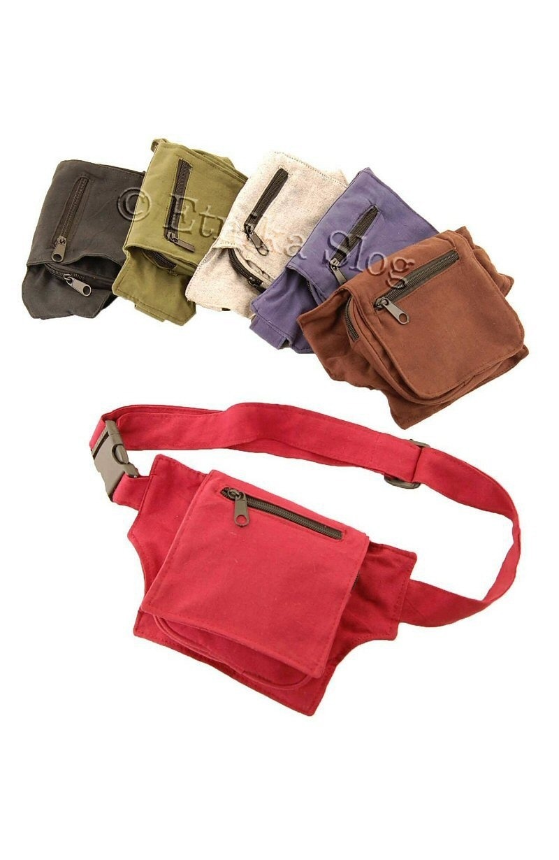 MARSUPIO A CINTURA IN COTONE TINTA UNITA, 3 SCOMPARTI CON CHIUSURA BOTTONE MAGNETICO.