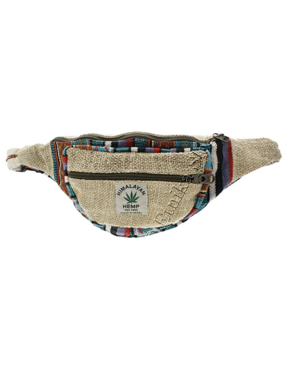 MARSUPIO A CINTURA IN CANAPA E COTONE A RIGHE, 3 SCOMPARTI CON CHIUSURA ZIP.