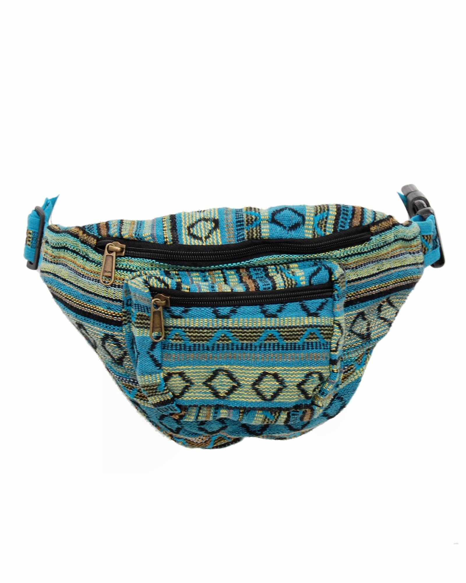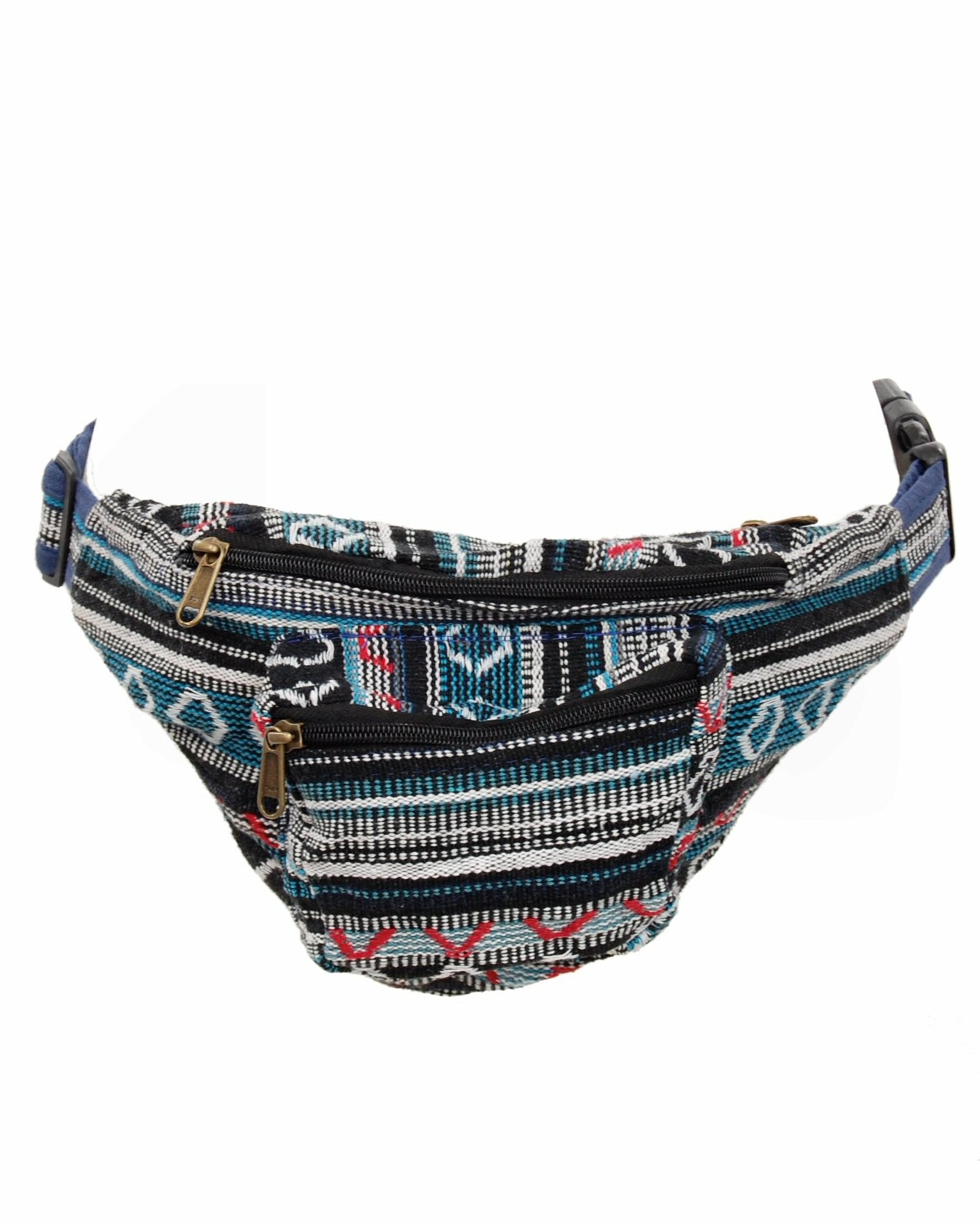 MARSUPIO IN COTONE A RIGHE E ROMBI, 3 SCOMPARTI CON ZIP.