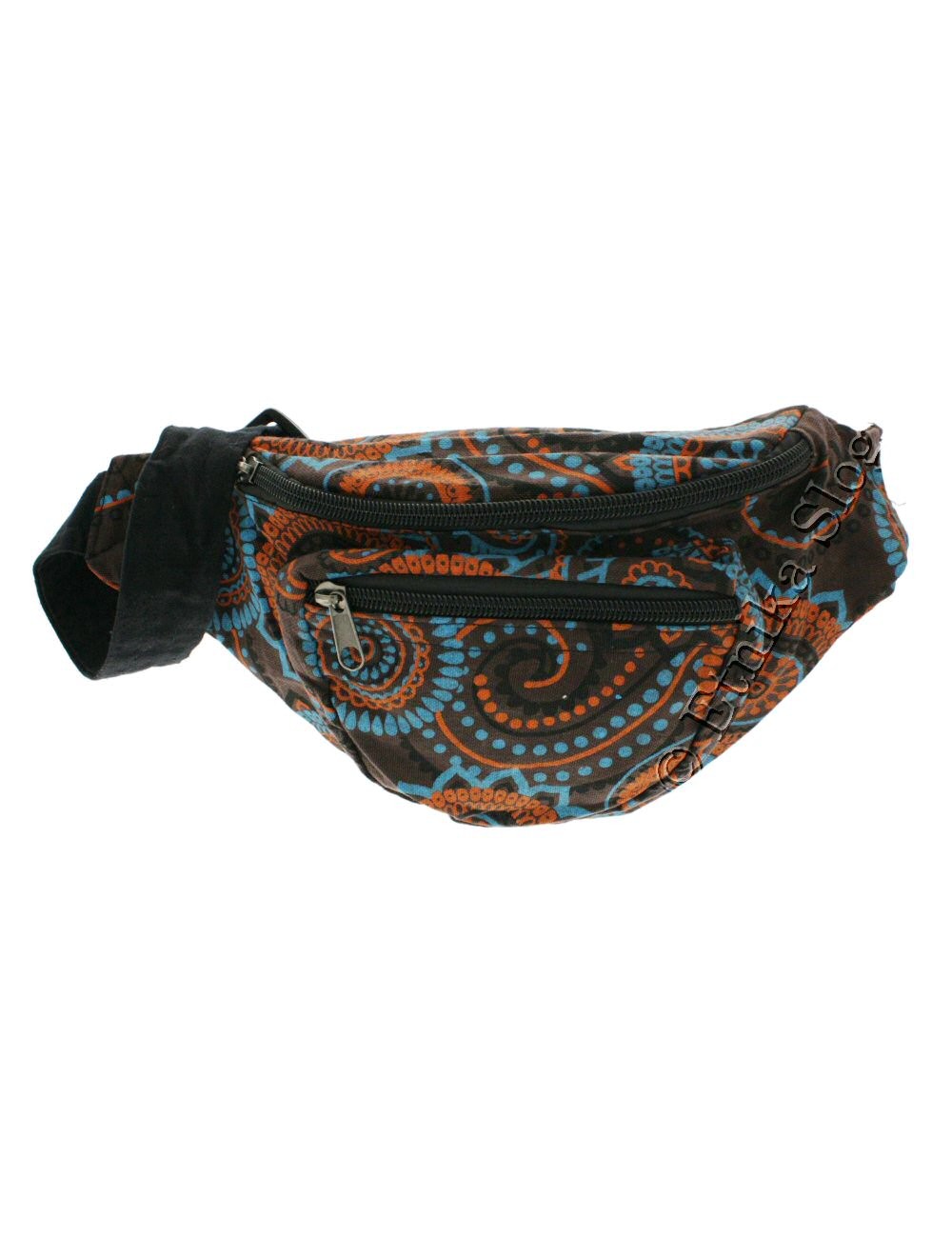 MARSUPIO A CINTURA IN COTONE STAMPATO, 3 SCOMPARTI CON CHIUSURA ZIP.