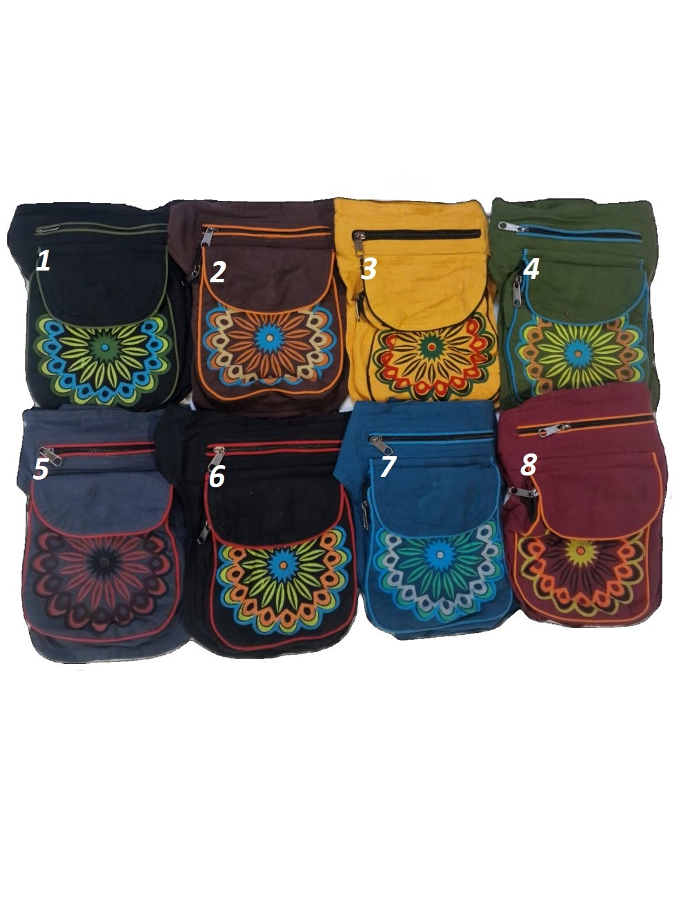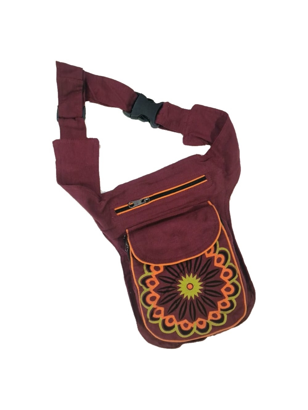 MARSUPIO IN COTONE STAMPATO FIORE MANDALA, 3 SCOMPARTI.