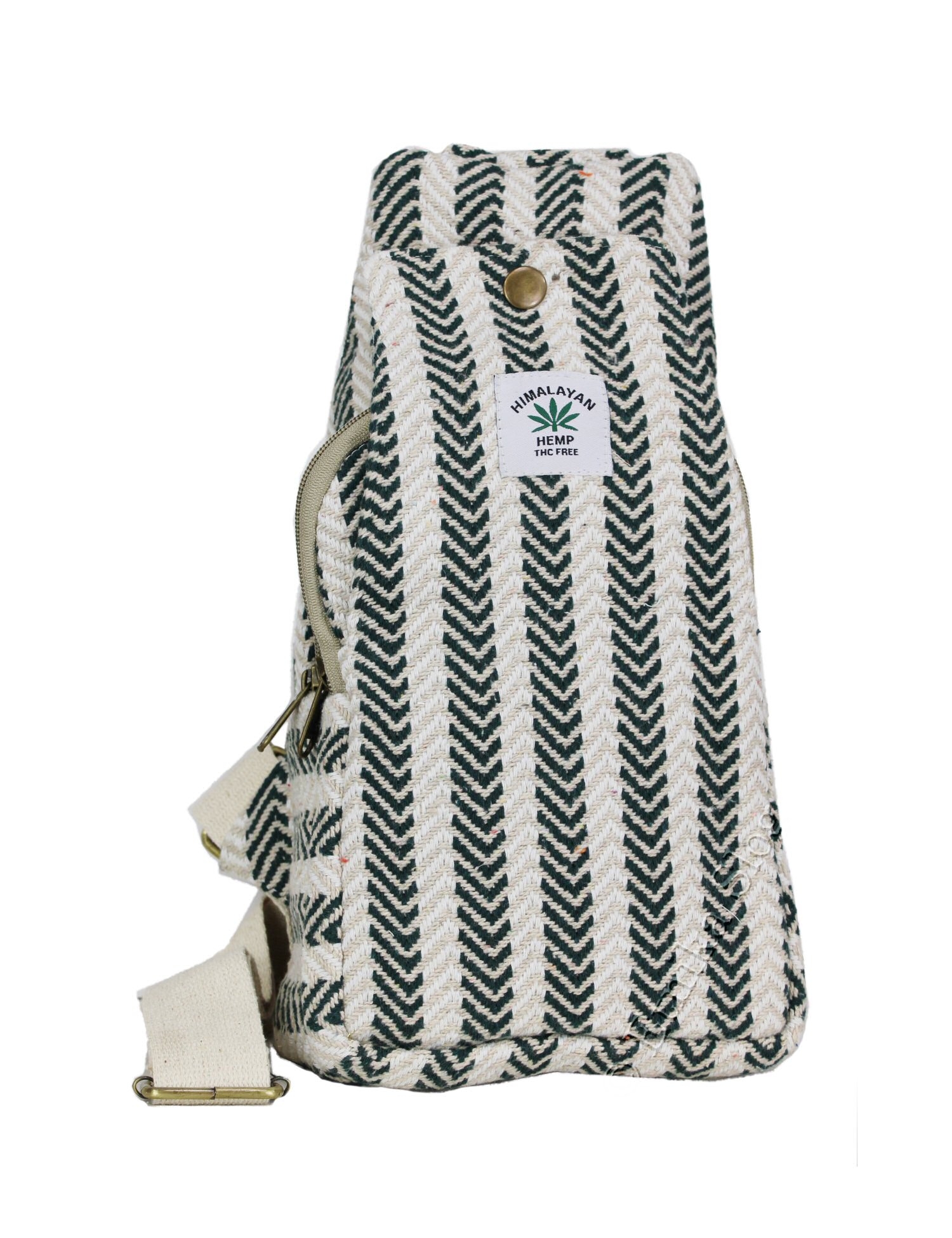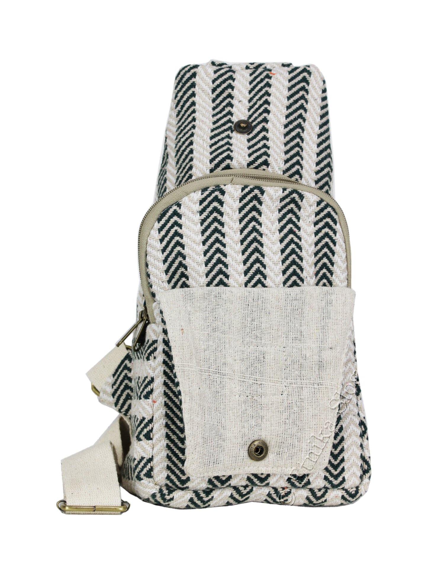 MARSUPIO CON TASCA LATERALE IN CANAPA E COTONE A RIGHE, 2 SCOMPARTI.