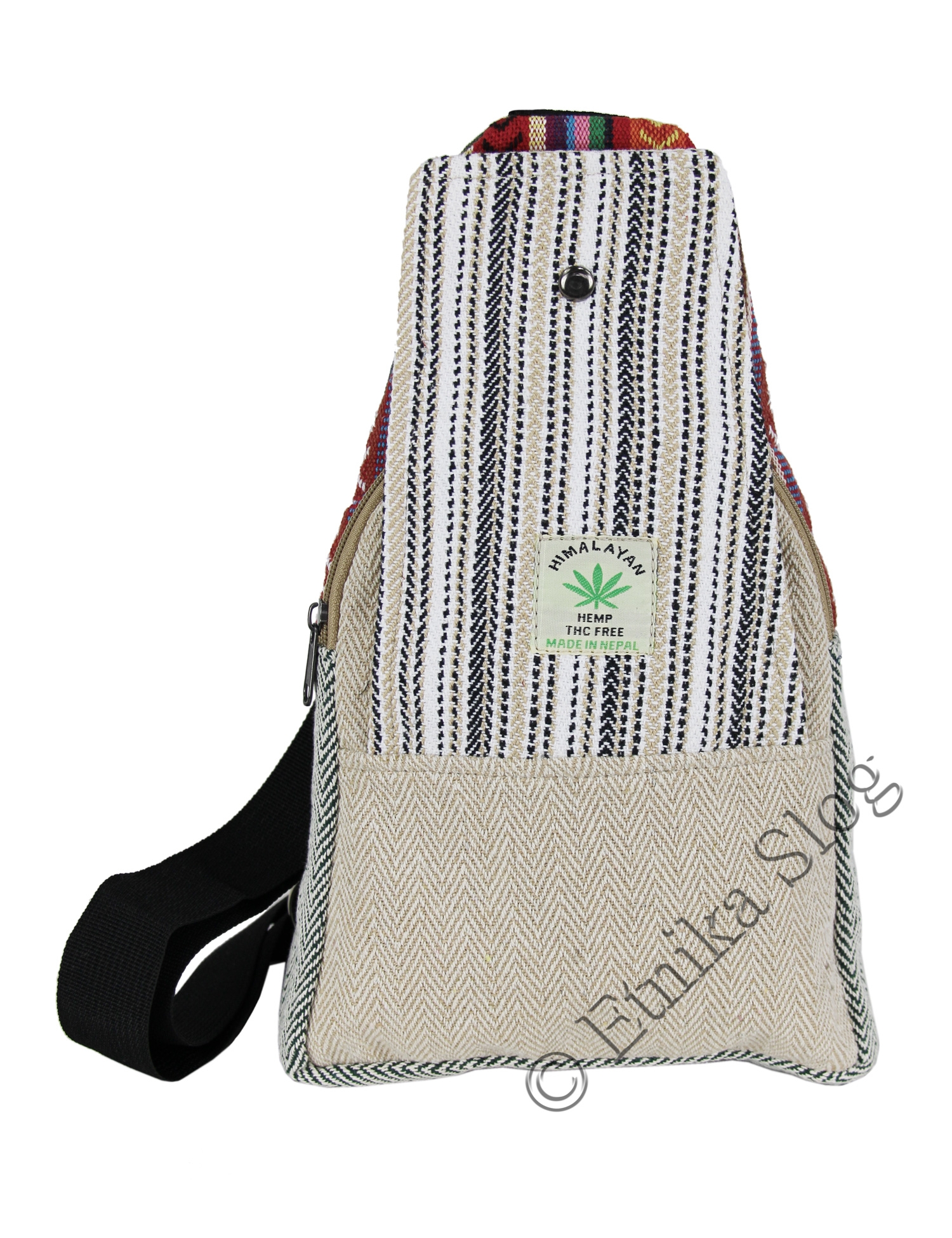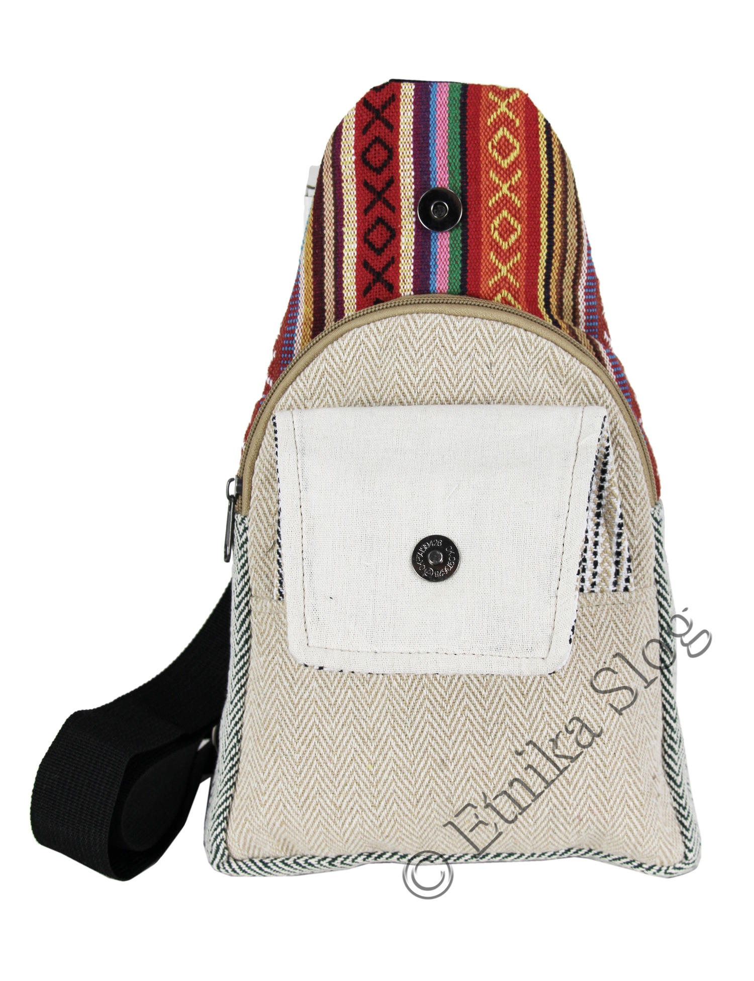 MARSUPIO CON TASCA LATERALE IN CANAPA E COTONE A RIGHE, 1 SCOMPARTO.