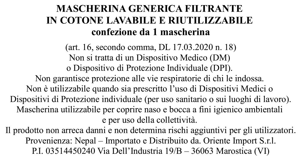 LA MASCHERINA E' IN COTONE LAVABILE E RIUTILIZZABILE.