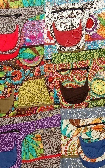 BORSA THAILANDESE TRACOLLA , BORSETTA TONDA IN GIACINTO D'ACQUA.FODERA IN COTONE, CHIUSURA CON CERNIERA, MISURA SENZA MANICO 22X16X8 CM.