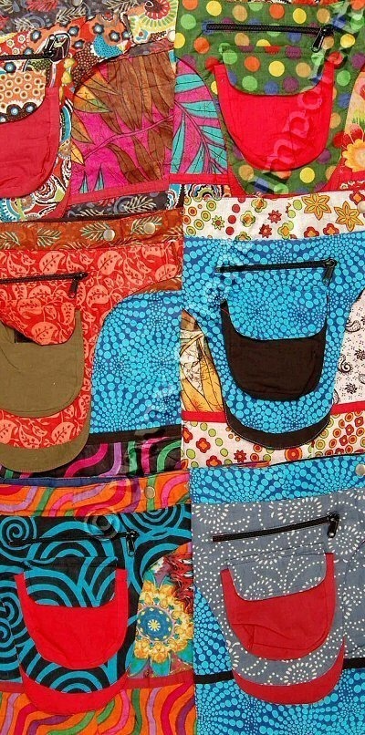 BORSA THAILANDESE TRACOLLA , BORSETTA TONDA IN GIACINTO D'ACQUA.FODERA IN COTONE, CHIUSURA CON CERNIERA, MISURA SENZA MANICO 22X16X8 CM.