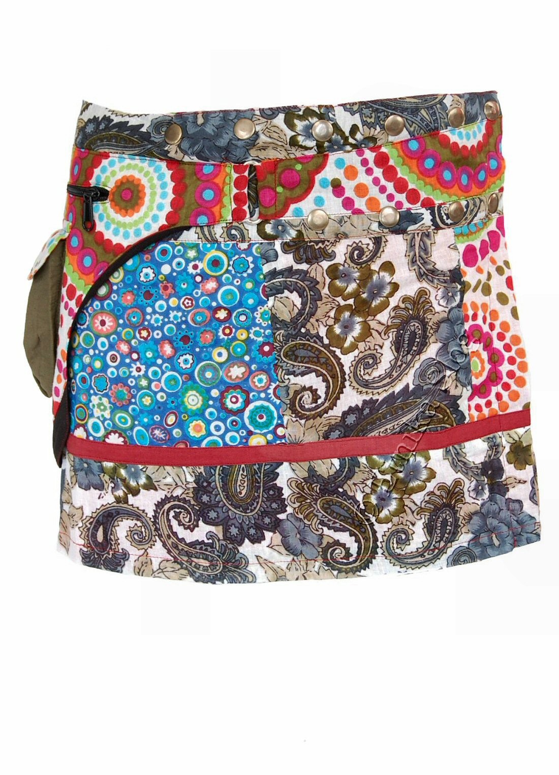 MINI GONNA IN COTONE LEGGERO, FANTASIE MISTE, CON MARSUPIO.