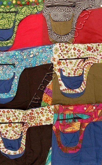 BORSA THAILANDESE TRACOLLA , BORSETTA TONDA IN GIACINTO D'ACQUA.FODERA IN COTONE, CHIUSURA CON CERNIERA, MISURA SENZA MANICO 22X16X8 CM.