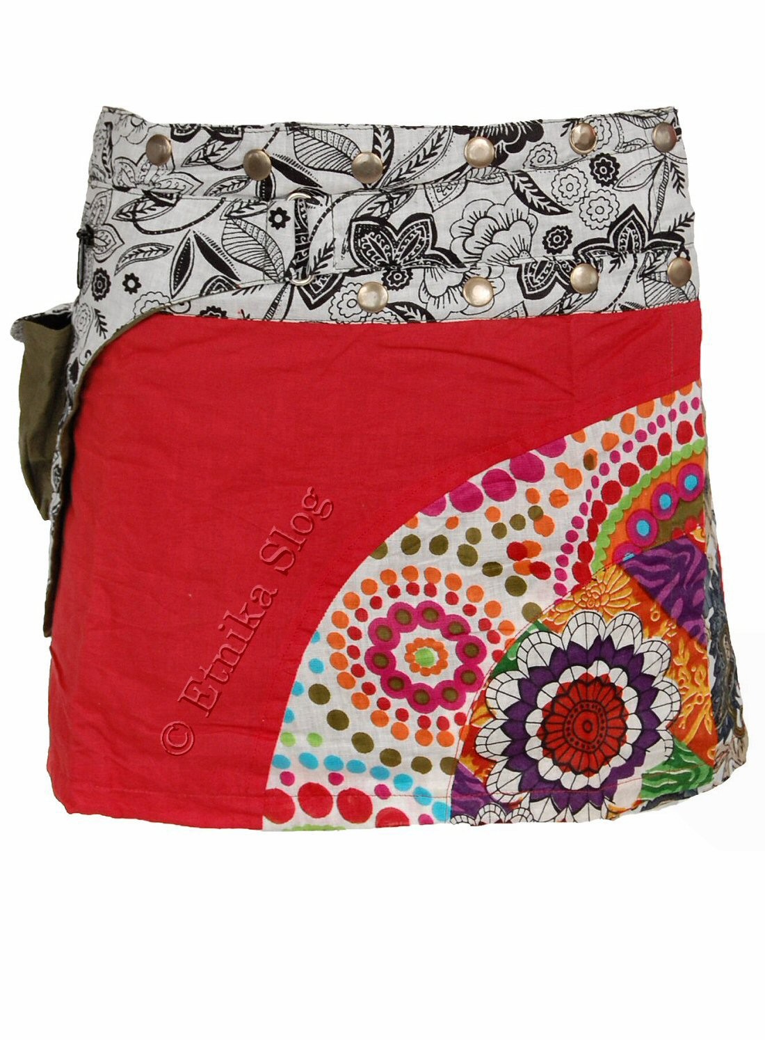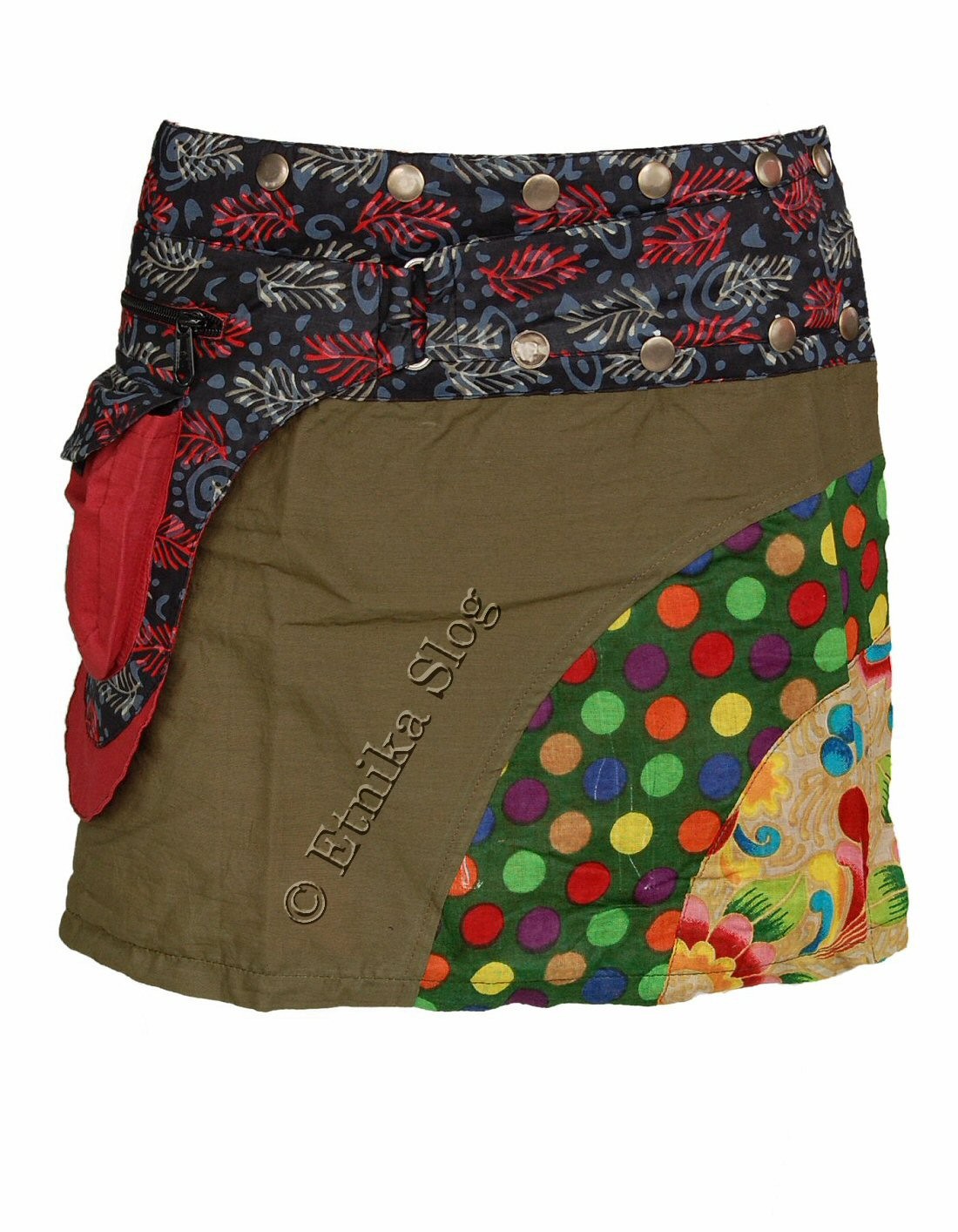 MINI GONNA IN COTONE LEGGERO, FANTASIE MISTE, CON MARSUPIO.