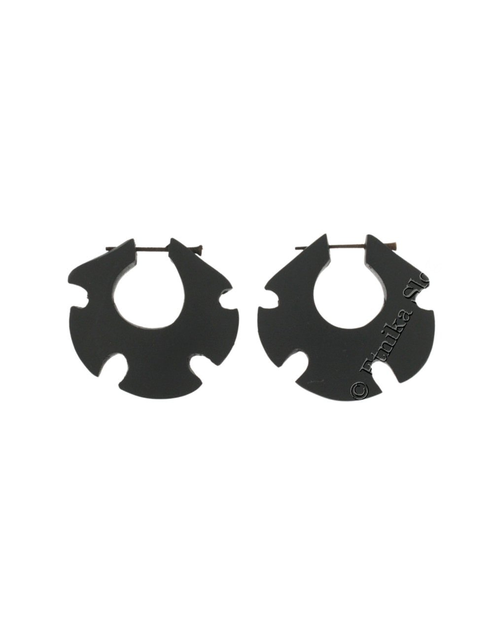 BIGIOTTERIA INDONESIANA ORECCHINI IN LEGNO SCURO , CHIUSURA CON BASTONCINO.