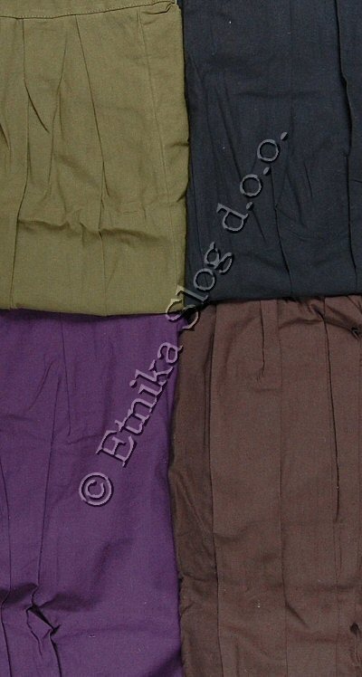 PANTALONE TIPO TURCO CORTO, CON ELASTICO IN VITA NELLA PARTE DIETRO E CINTURA RICAMATA RIMOVIBILE DAVANTI - RICAMO ANCHE SULLE GINOCCHIA E 2 TASCHE GRANDI.