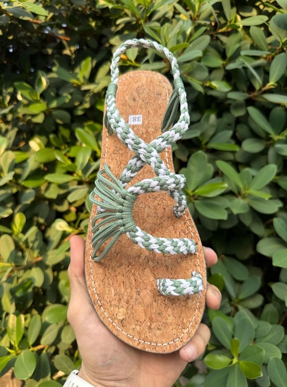 SANDALI CON CORDA COTONE INTRECCIATI , SUOLA IN GOMMA E SUGHERO