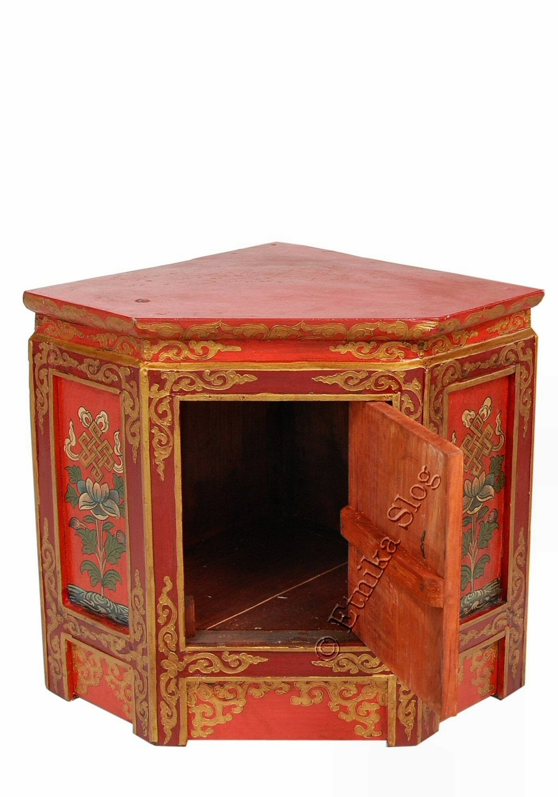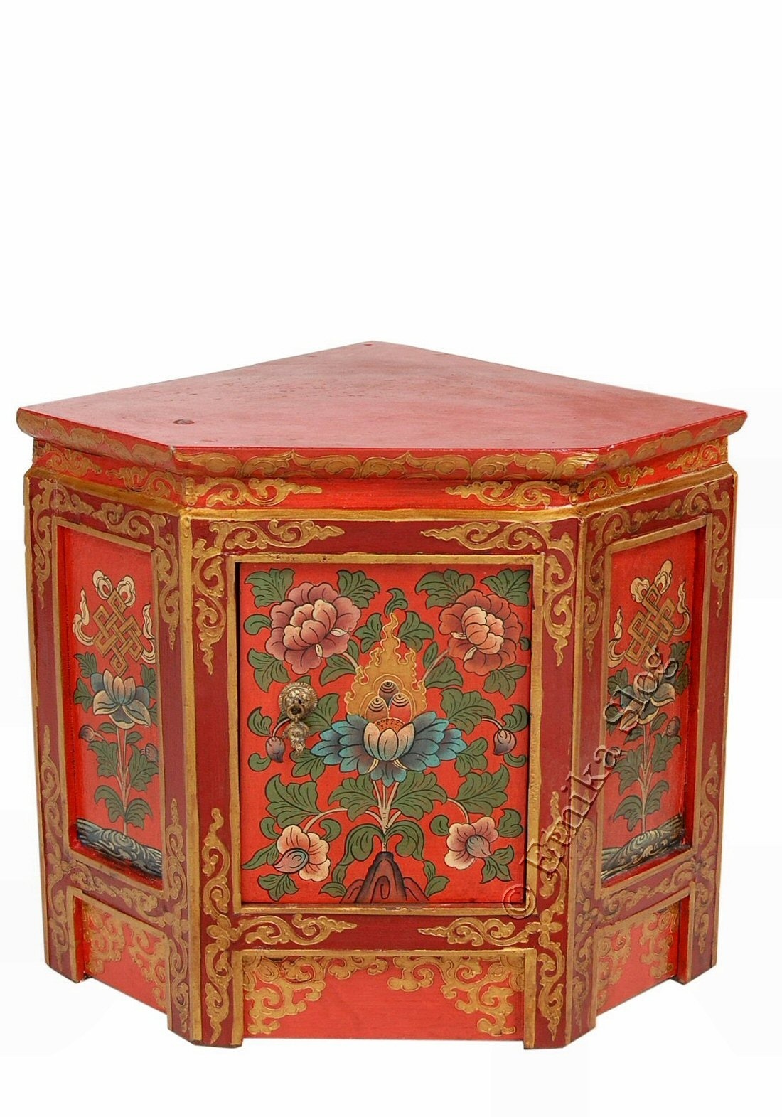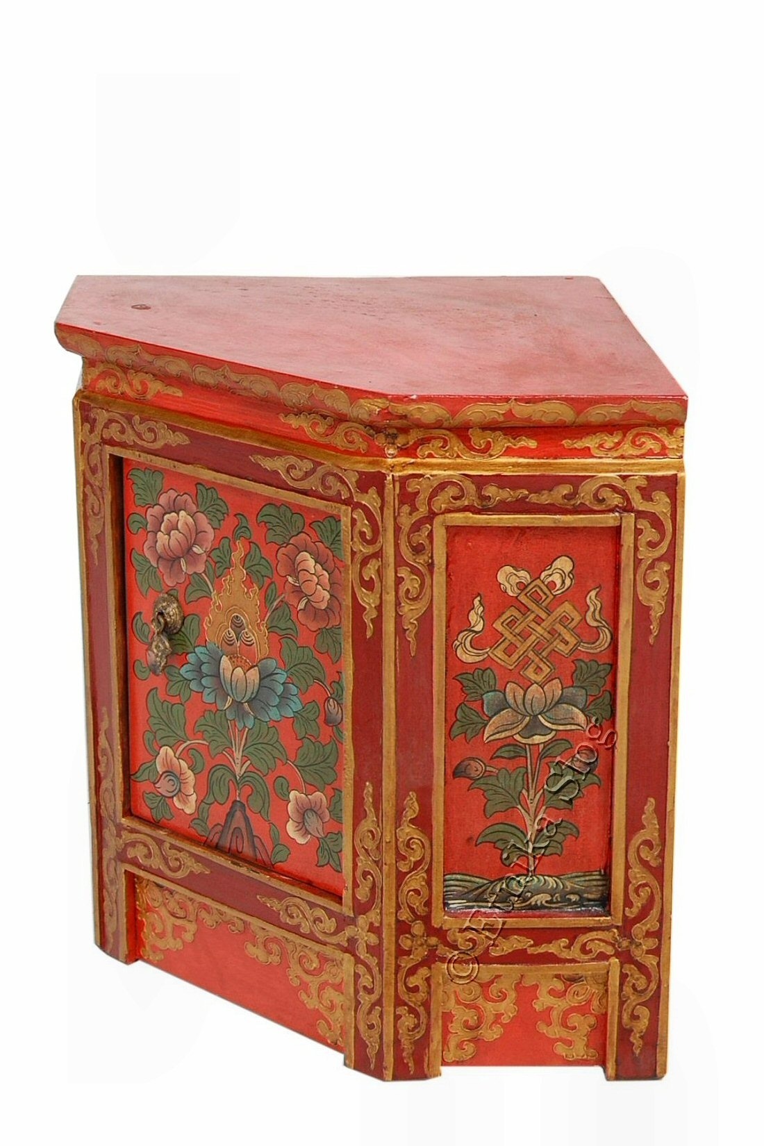 MOBILETTO NEPAL ANGOLARE IN LEGNO MASSICCIO, UN ANTA, INTERAMENTE DECORATO.