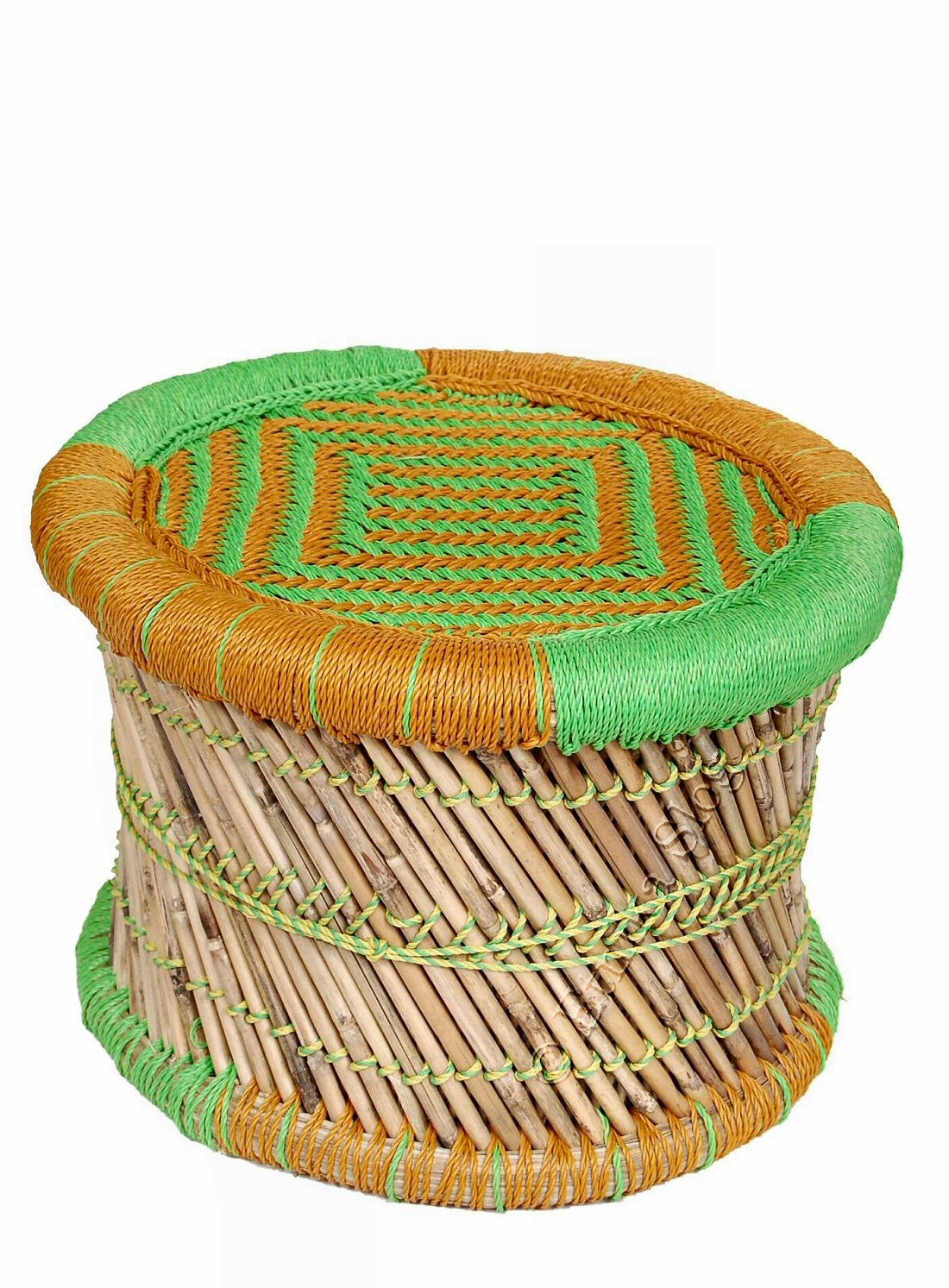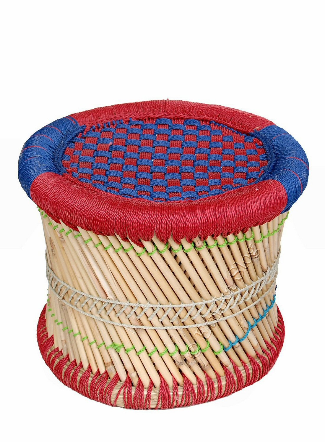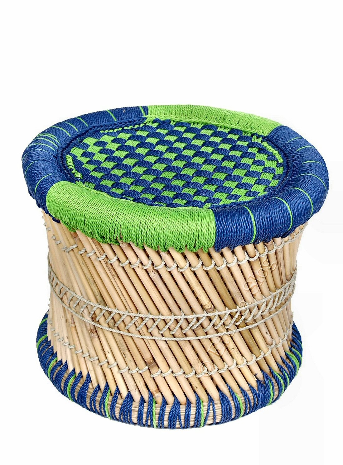 SGABELLO IN BAMBU E CORDA COLORATA IN NYLON.