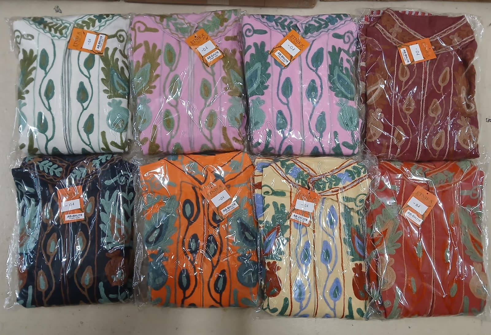 GIACCA SUZANI RICAMATA, MODELLO GIACCHINO MEDIO IN COTONE TRAMA FITTA LAVORATO E RICAMATO A MANO CON 2 TASCHE E MANICA LUNGA, ALL'INTERNO FODERATO IN COTONE CON RIGHE.GIRO SENO 120CM , LUNGHEZZA 82CM.DISPONIBILE IN VARI COLORI, RICAMO COME FOTO COLORI DIFFERENTI, FATTO ARTIGIANALMENTE OGNI PEZZO è DIVERSO