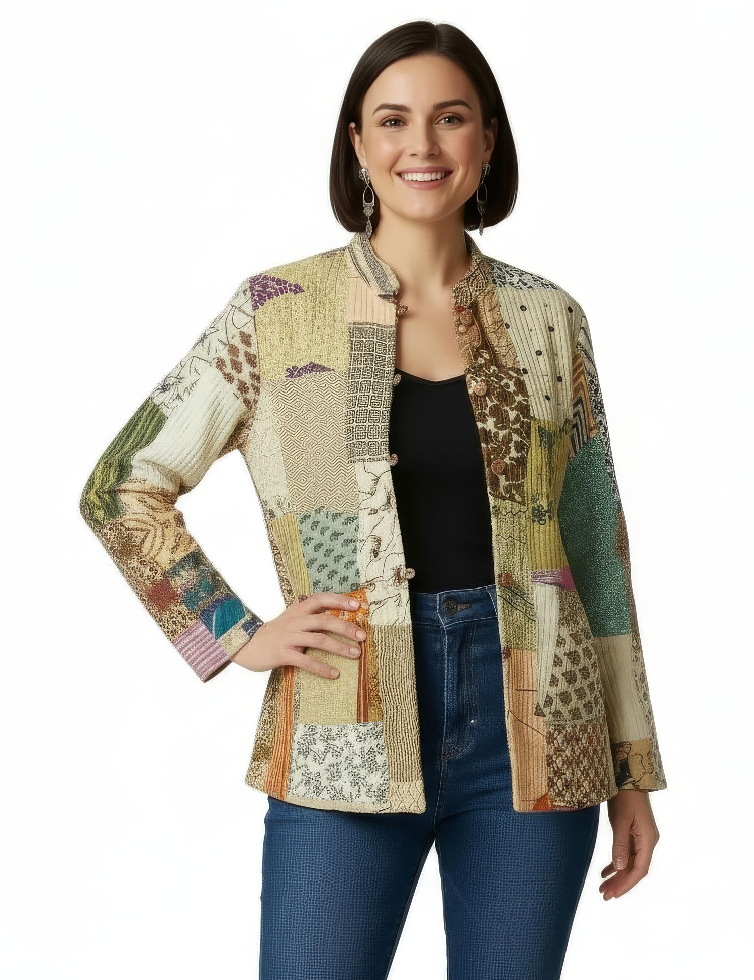 GIACCHINO CORTO MISTOSETA TRAPUNTATA A MANO, CHIUSURA CON BOTTONI, CON ESTERNO PATCHWORK E ALL'INTERNO FODERATO CON FANTASIE ABBINATE AL COLORE.LE TAGLIE DISPONIBILI SONO DALLA S ALLA XXL.DISPONIBILE IN VARI COLORI ASSORTITI OGNI PEZZO è DIVERSO !!